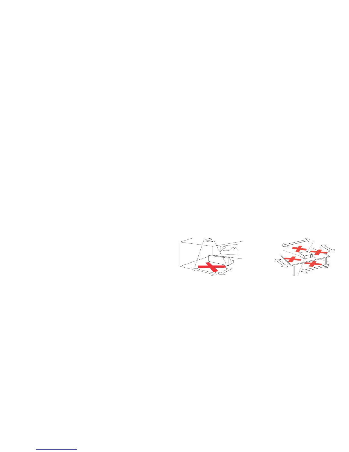 from all projector vents. For ceiling applications, keep people, food and drinks
