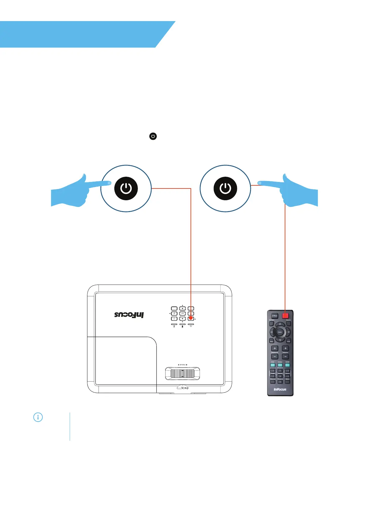 1. Securely connect the power cord to the projector and to the mains outlet. When connected, the On/Standby