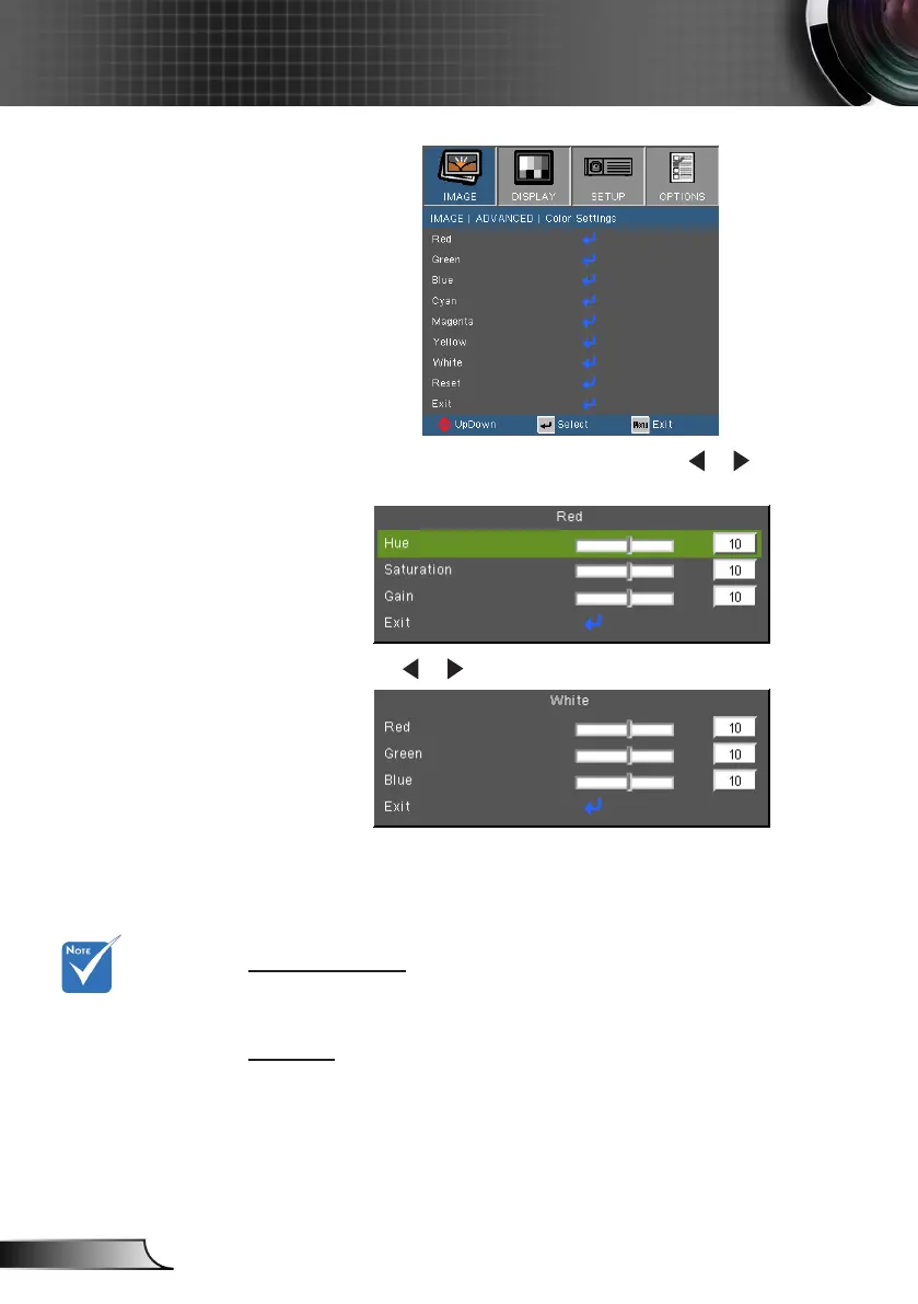 Red/Green/Blue/Cyan/Magenta/Yellow: Use or to select