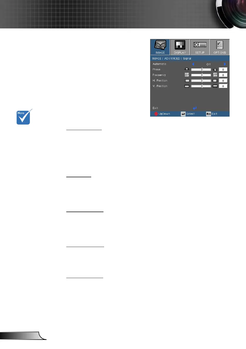 Phase, frequency items are grayed out, and if Signal is not auto-