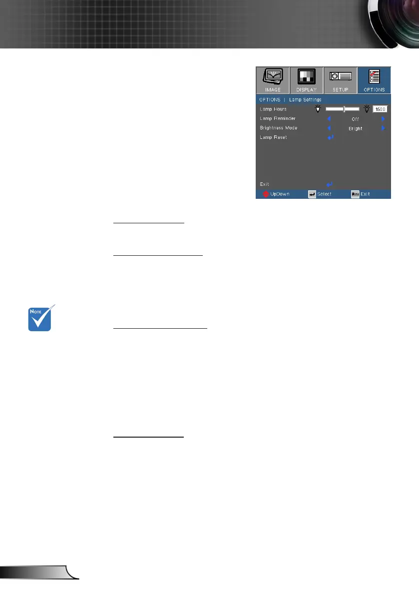 Eco.: Choose “Eco.” to dim the projector lamp which will lower