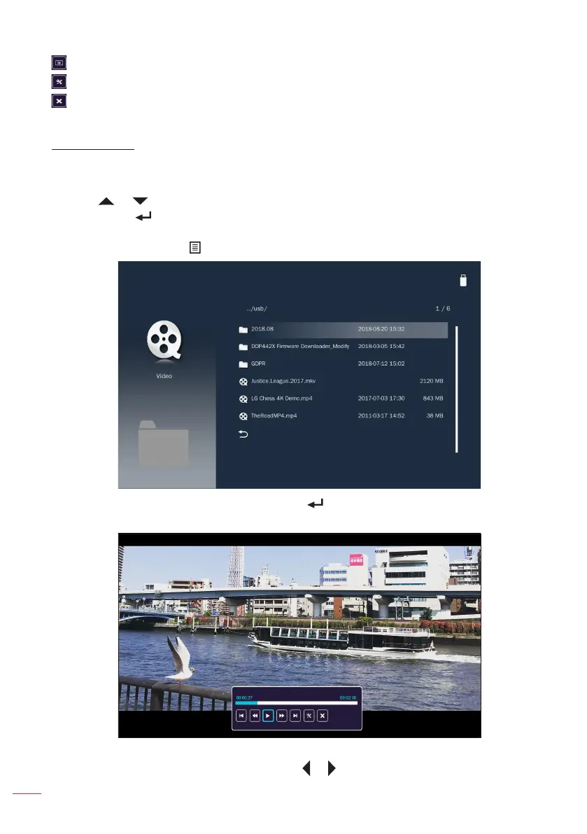 Note: To return to the previous folder or to exit the Video viewer, press the Menu button on the