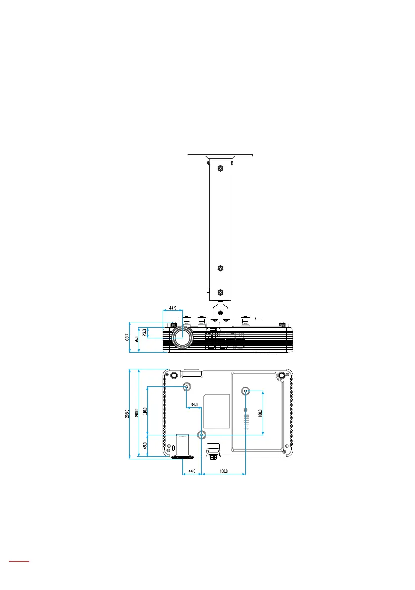 - Be sure to keep at least a 10cm gap between the ceiling and the bottom of the projector.
