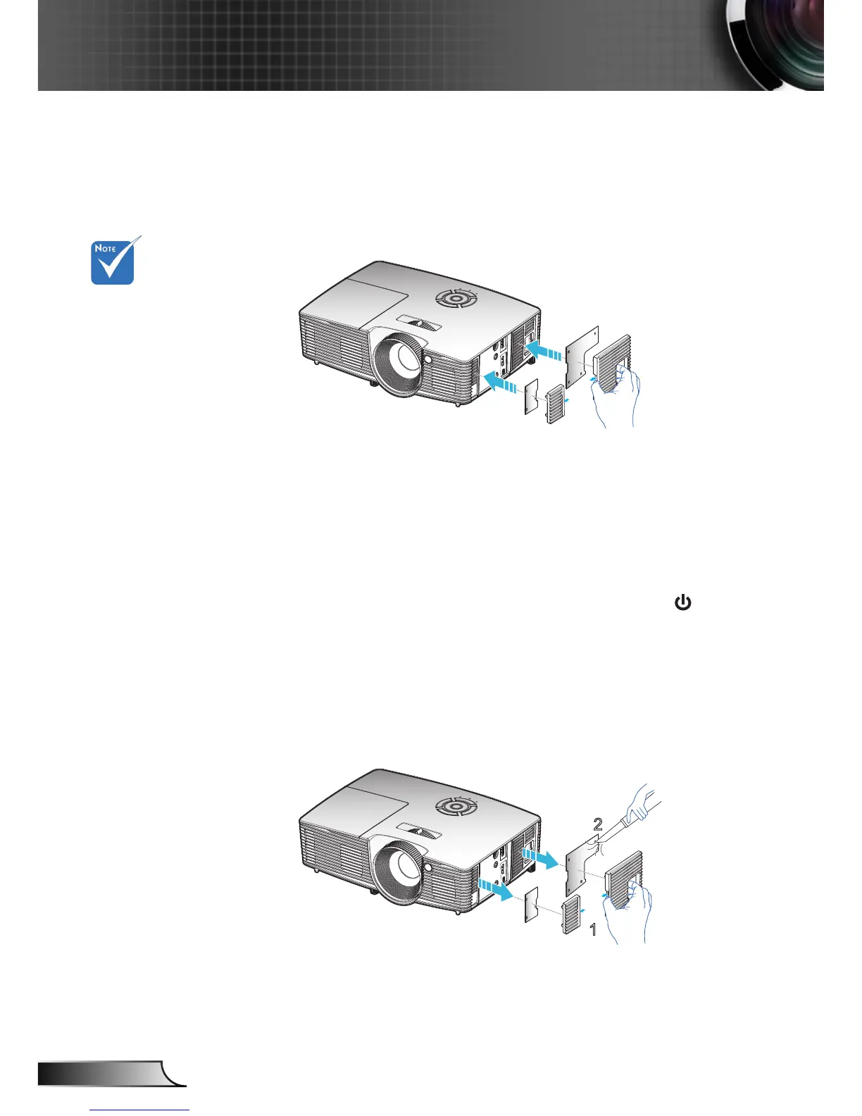1. Switch o the power to the projector by pressing the “ ” button on