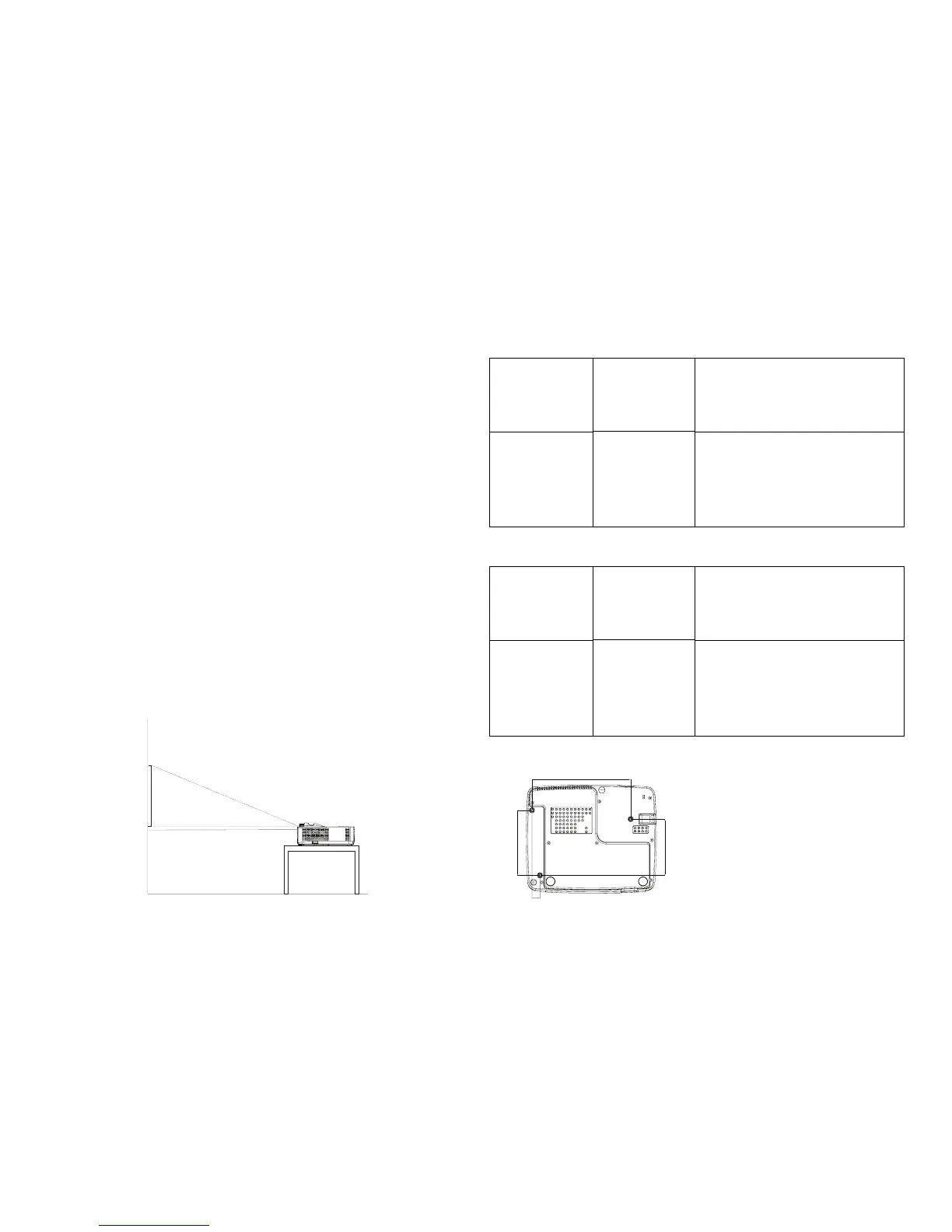 an image 60 inches (1.5 meters) tall from a table-mounted projector, the