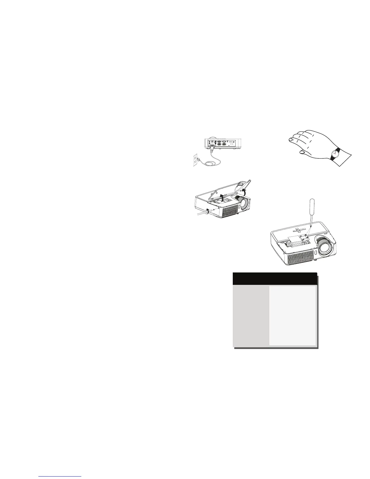 11 To reset the lamp hour timer, navigate to the Advanced Menu > Status/Service
