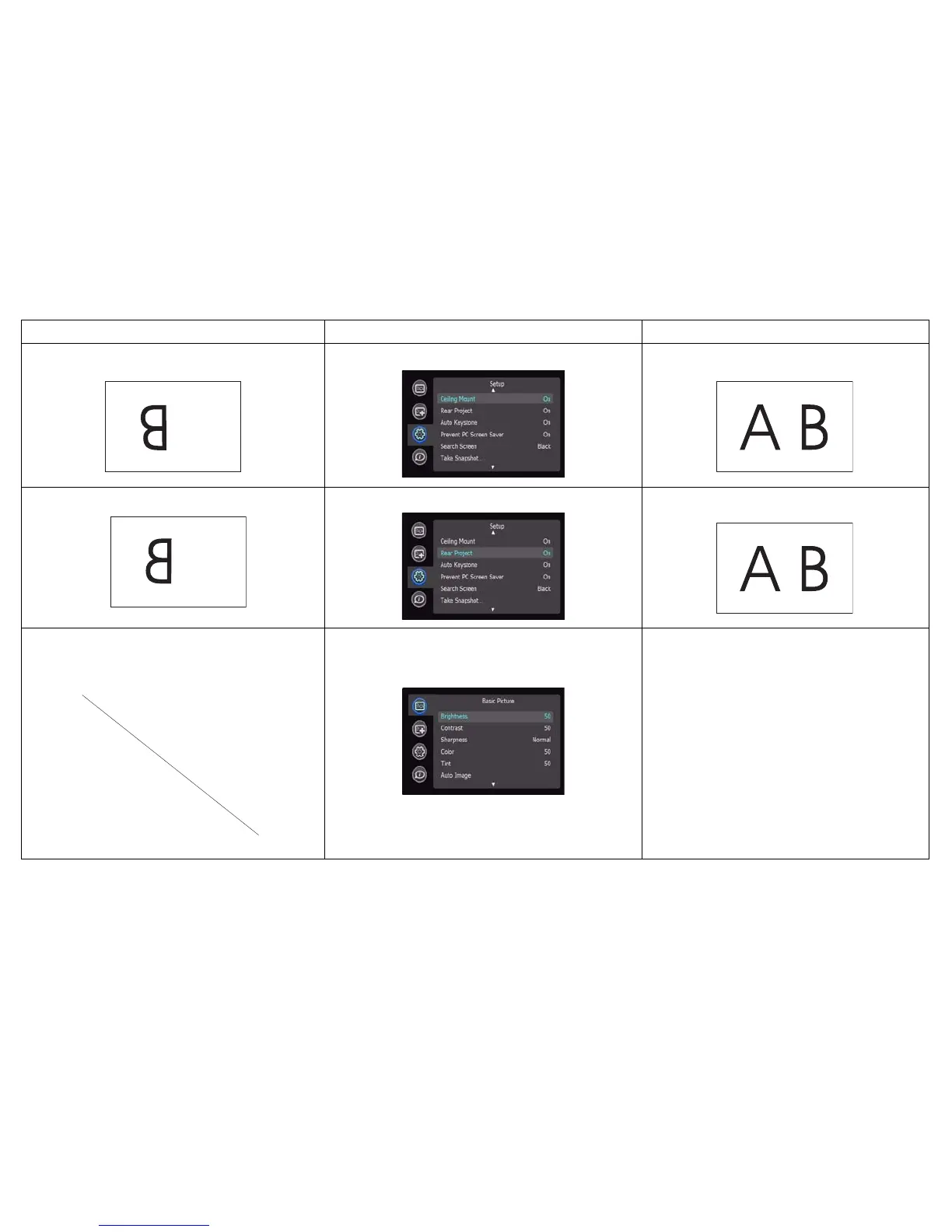 Image reversed left to right Turn off Rear Project in Setup menu Correct image