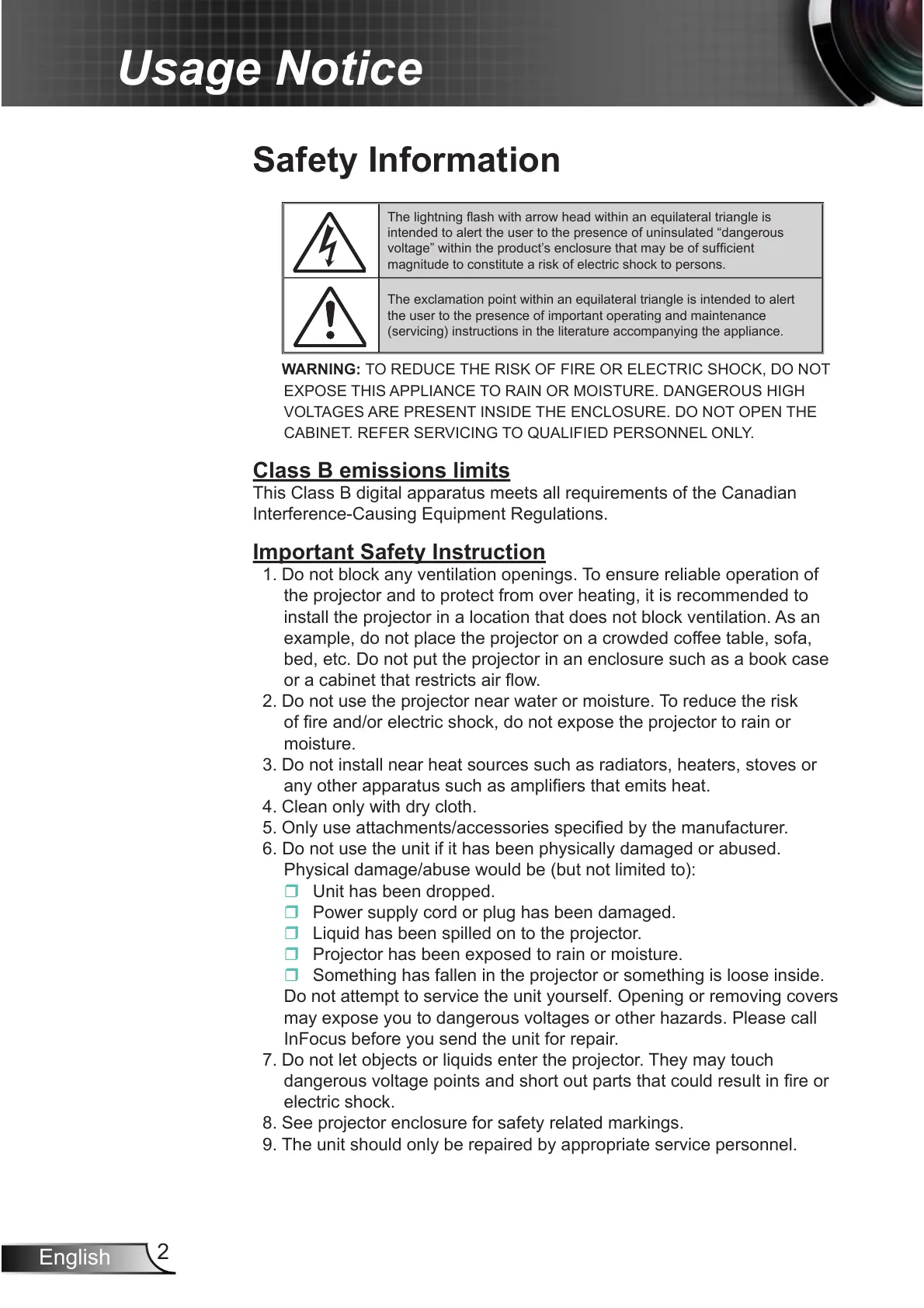 bed, etc. Do not put the projector in an enclosure such as a book case