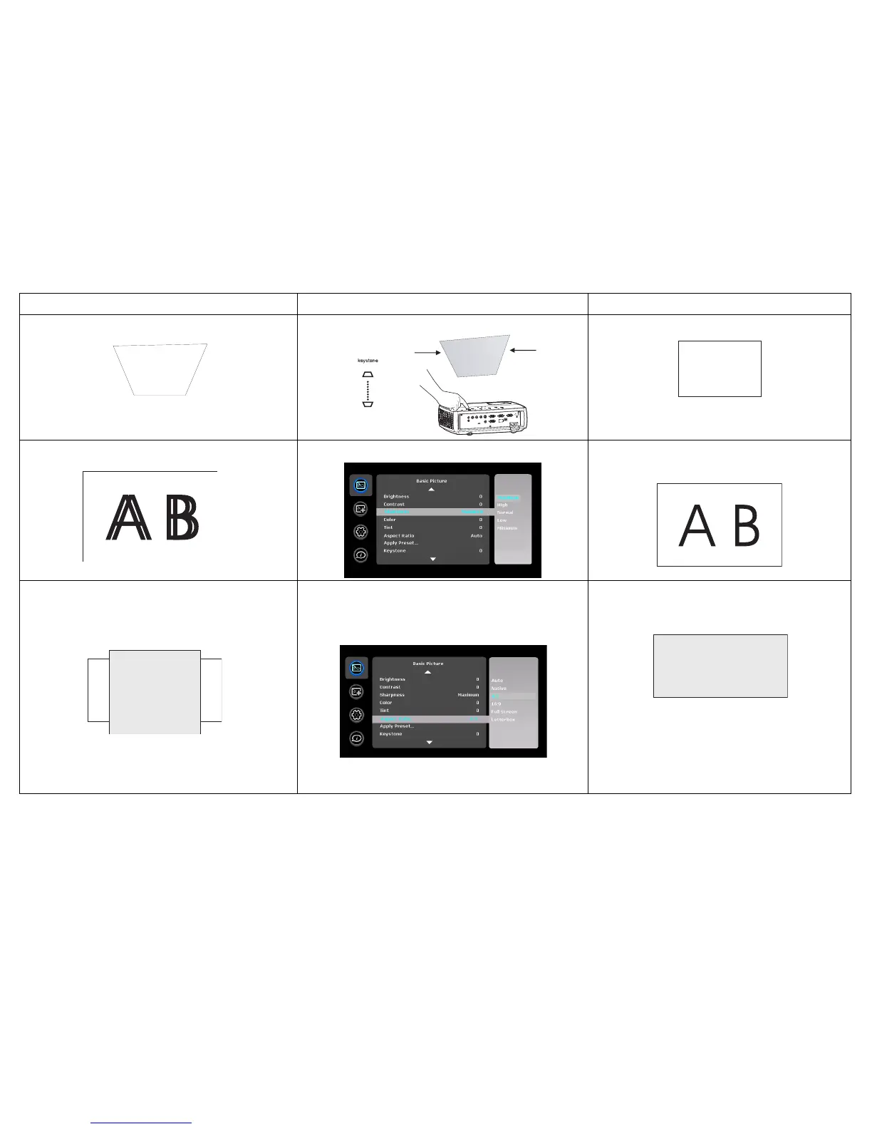 Image not square Adjust Keystone on keypad Square image