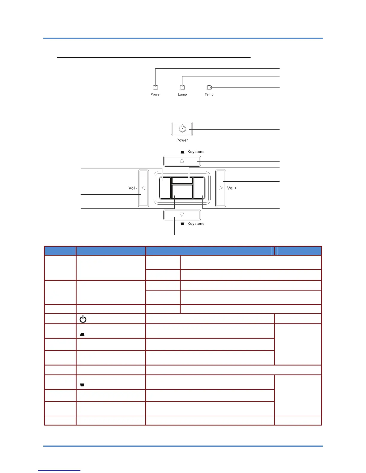 Top view—On-screen Display (OSD) buttons and LEDs