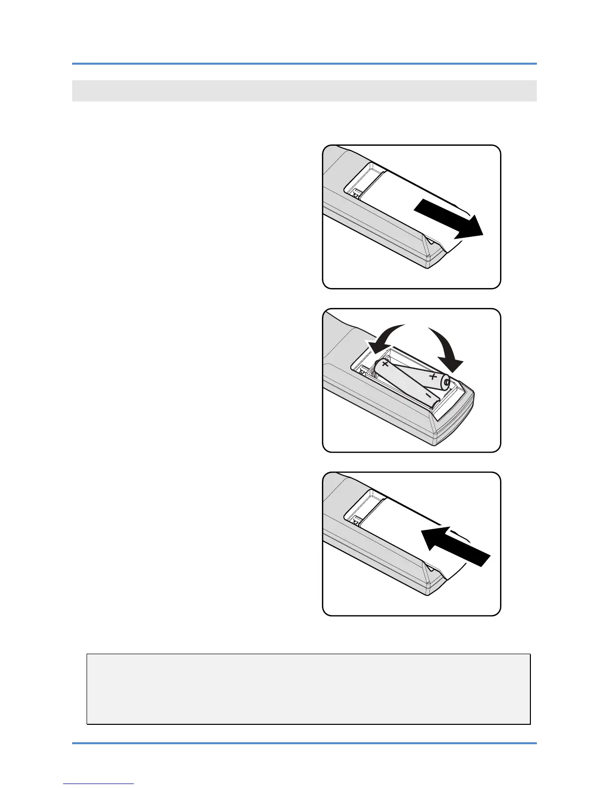 3. Remove the batteries when not using the projector for prolonged periods.
