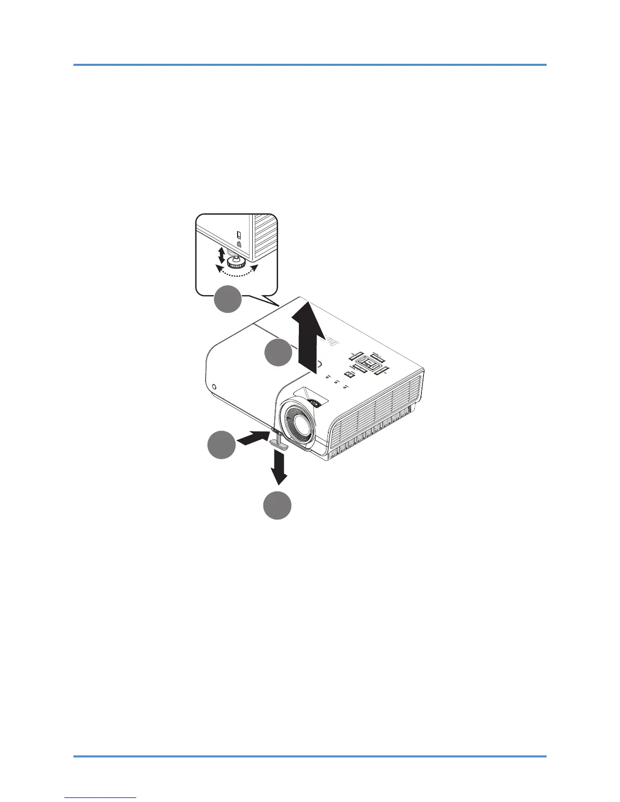 To lower the level of the projector, press the elevator button and push down