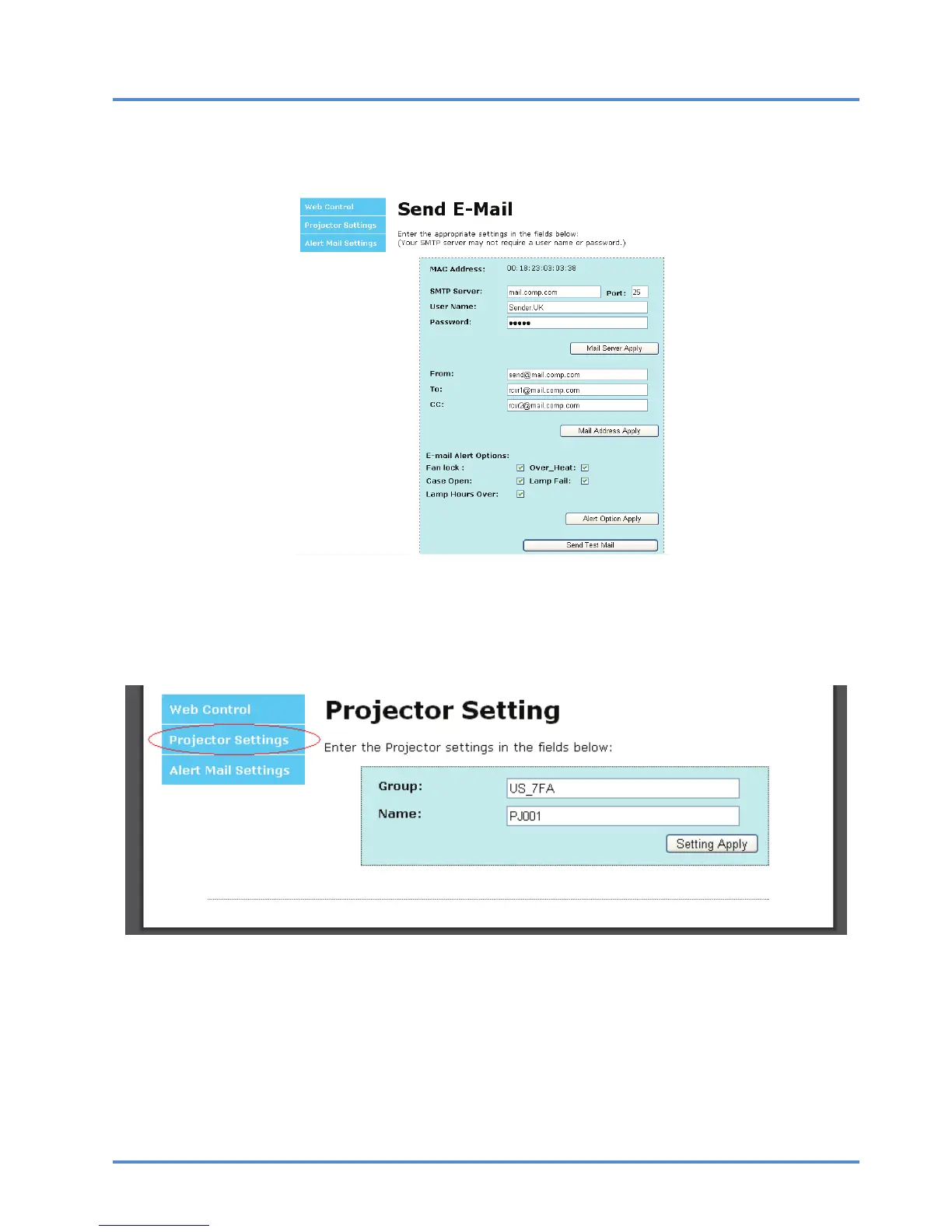 Group and Name identify the alerting projector and are located at the button of the alert mail as shown be-