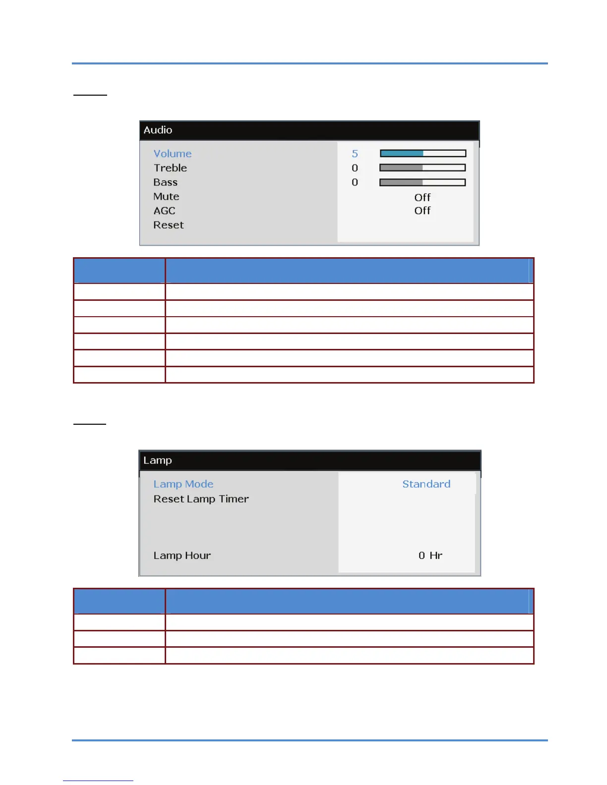 Lamp Hour Displays the number of hours the lamp has been in use.