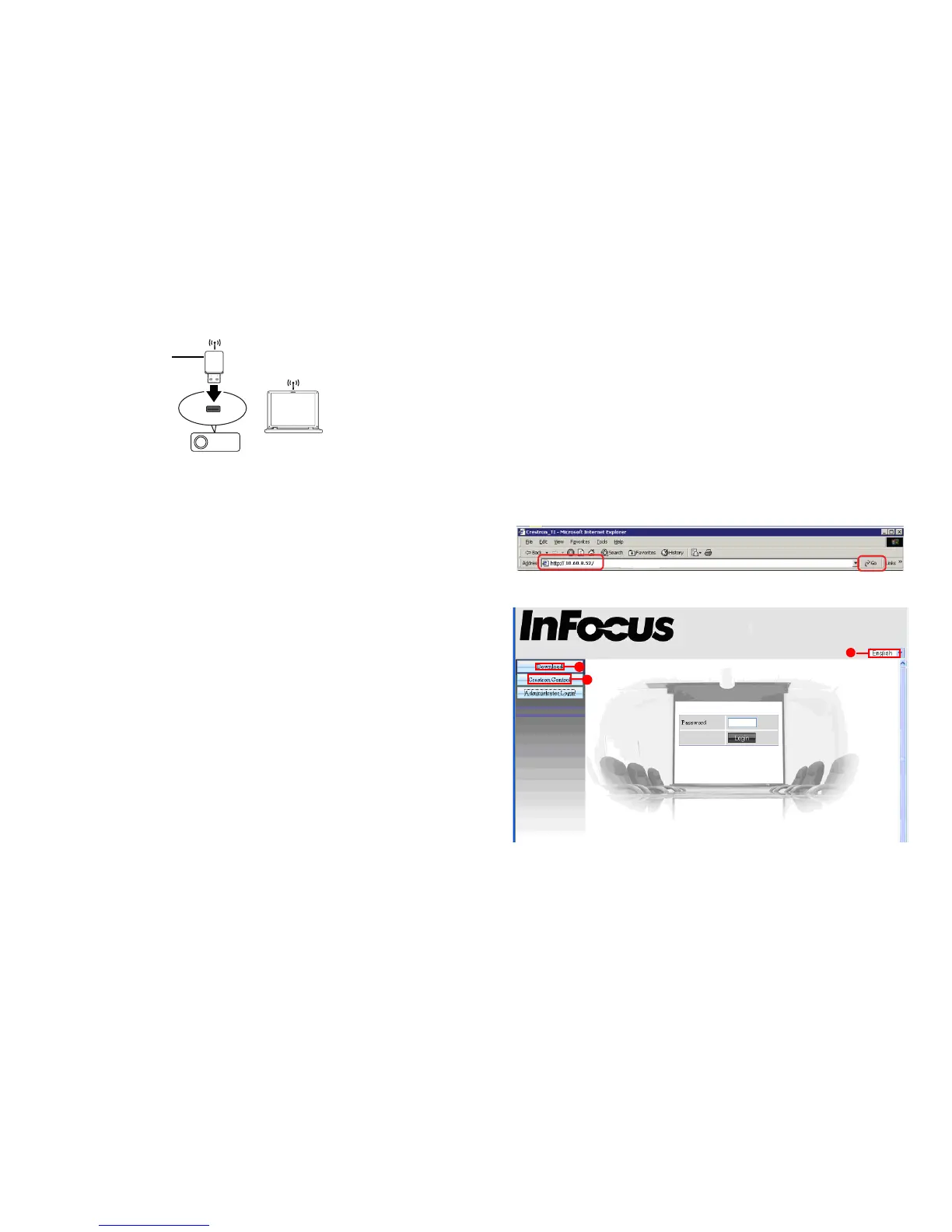 To connect to the projector wirelessly, you need to plug an optional InFocus