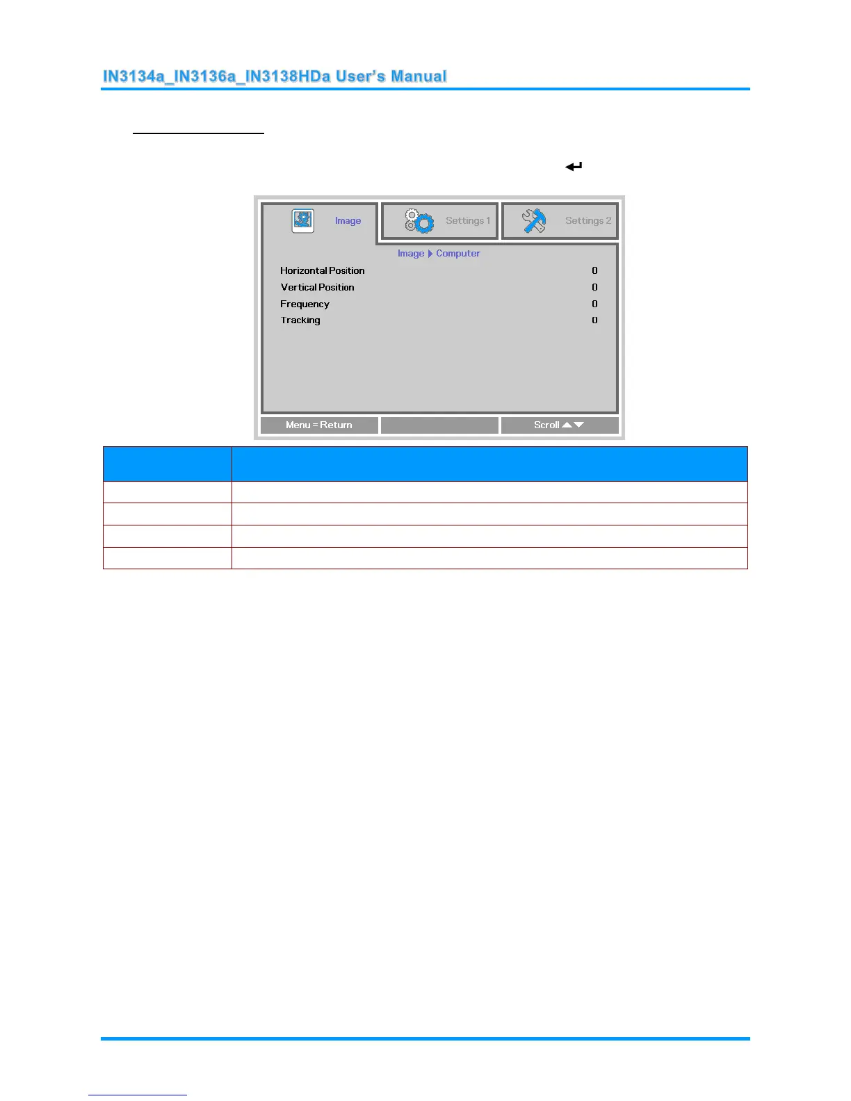 InFocus IN3134a - Computer Menu