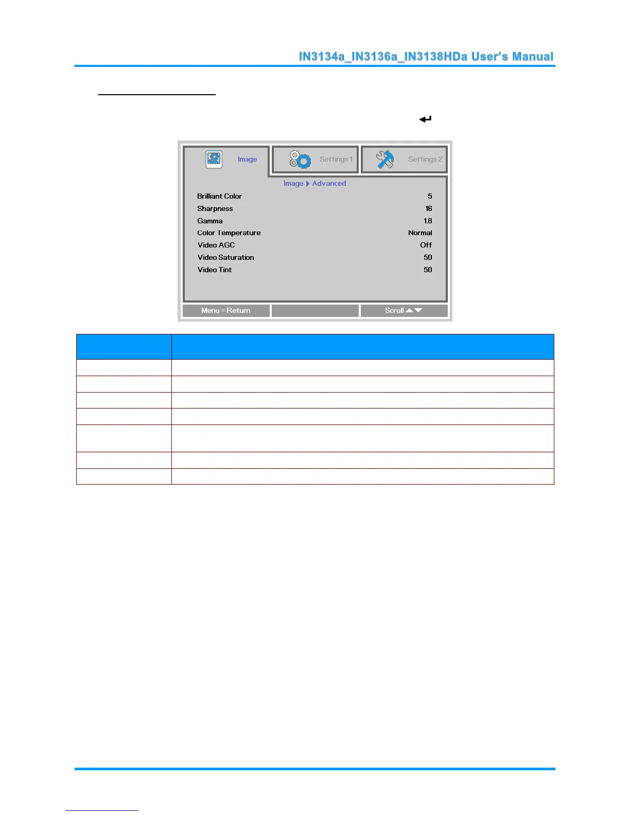 Press the ◄► buttons to enter and adjust the Brilliant Color value.
