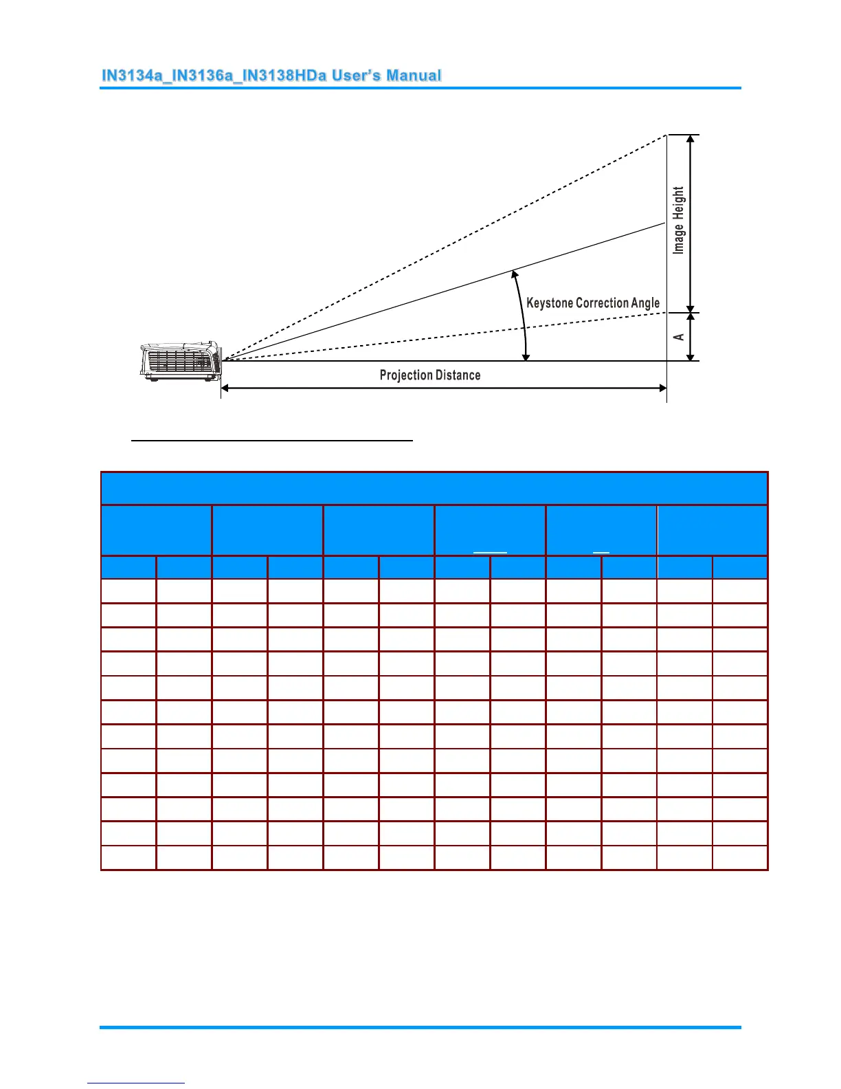 Projection Distance and Size Table