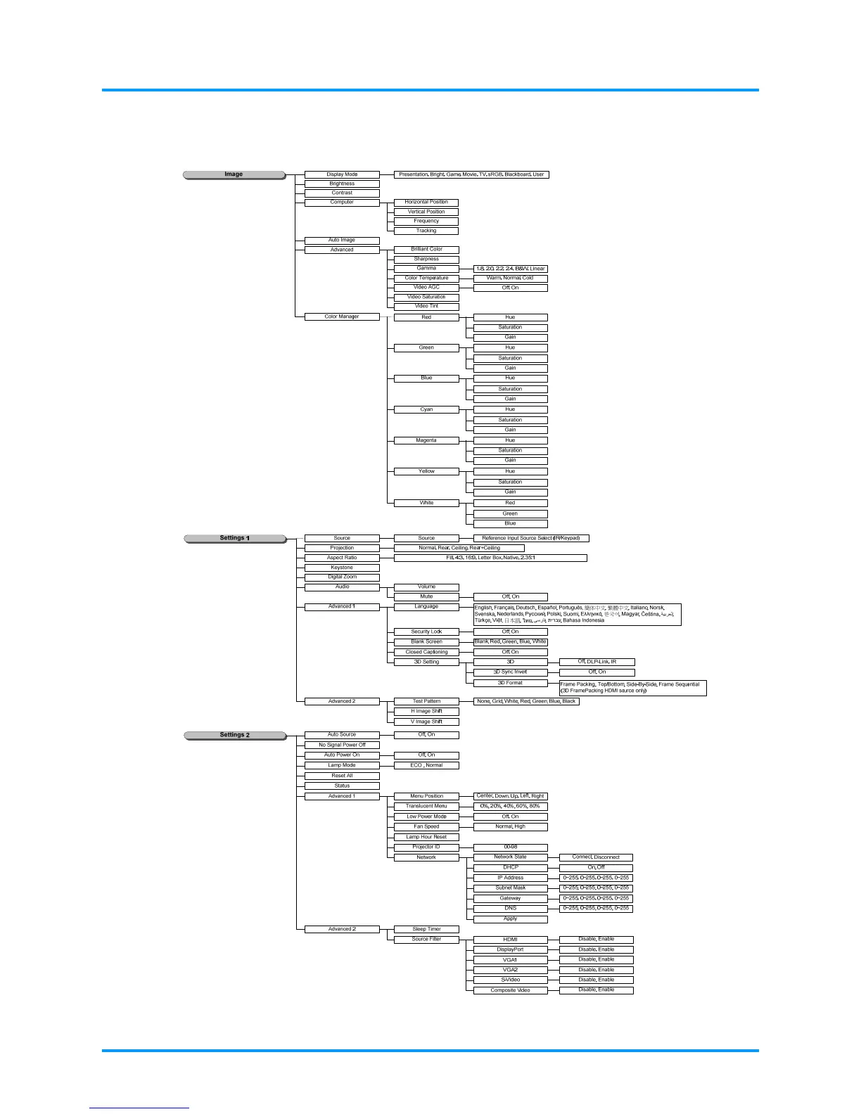Use the following illustration to quickly find a setting or determine the range for a setting.