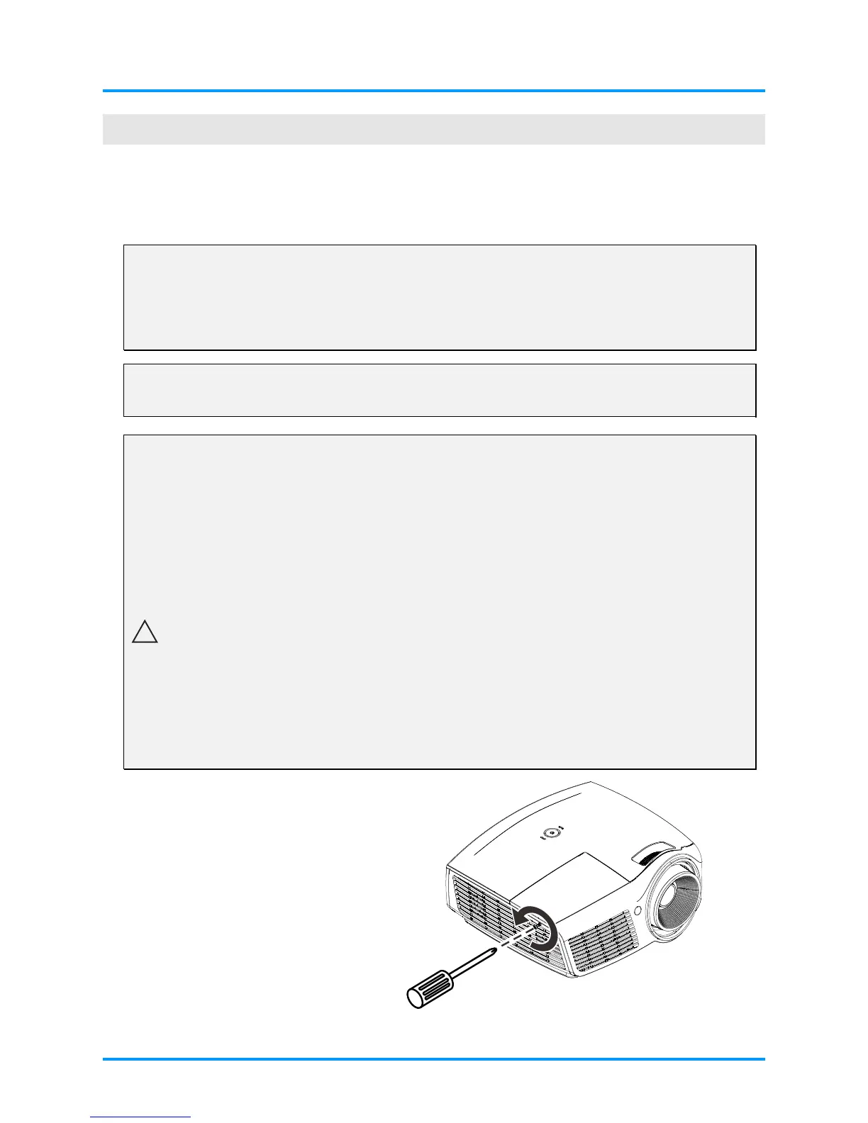 projector. Glass fragments could fall if the lamp has burned out.
