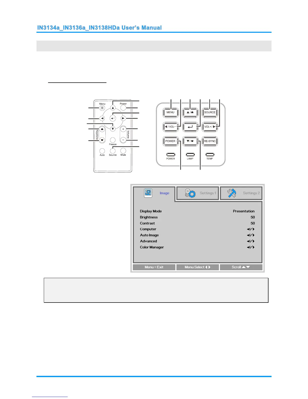 The projector has an OSD that lets you make image adjustments and change various settings.
