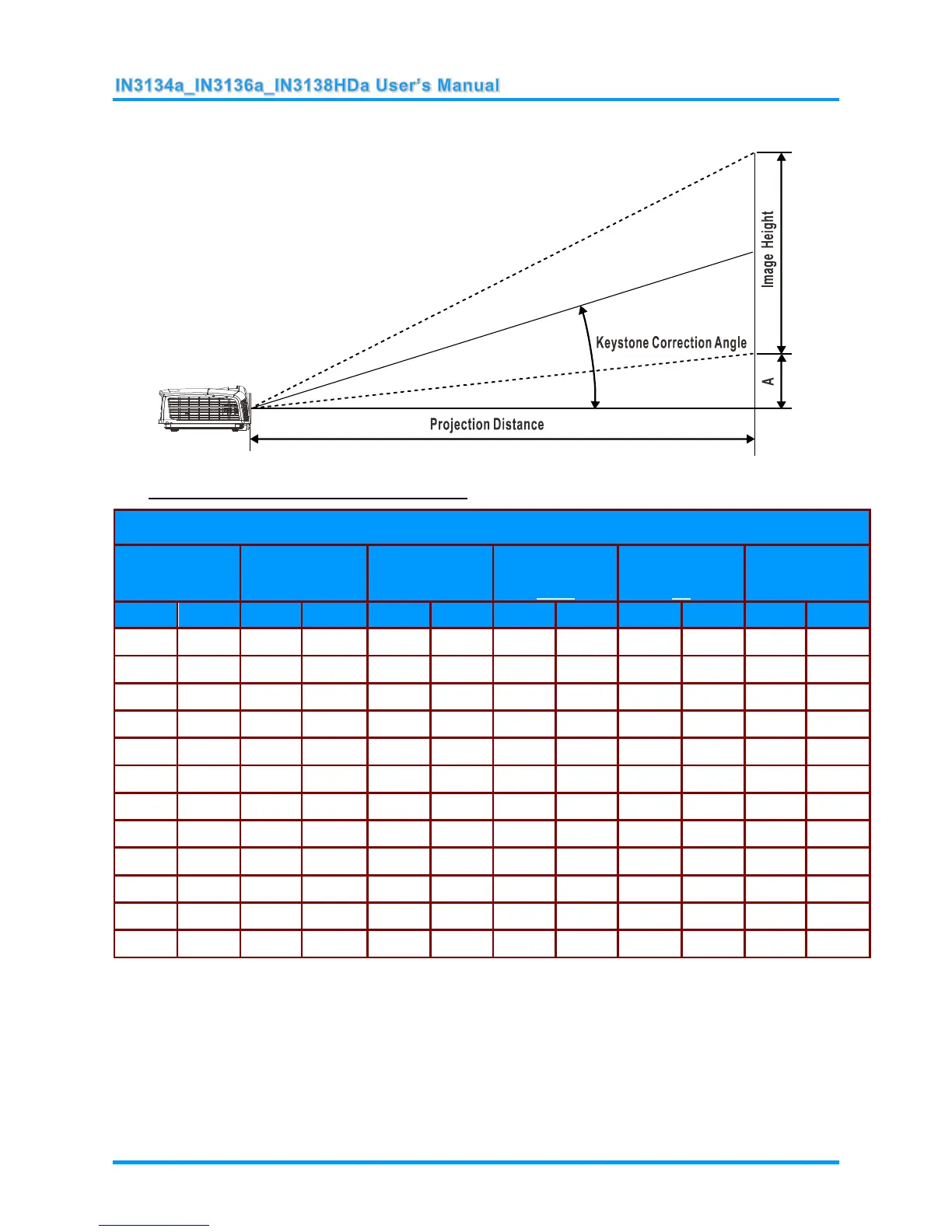 InFocus IN3138HDa - Projection Distance vs. Projection Size (XGA)