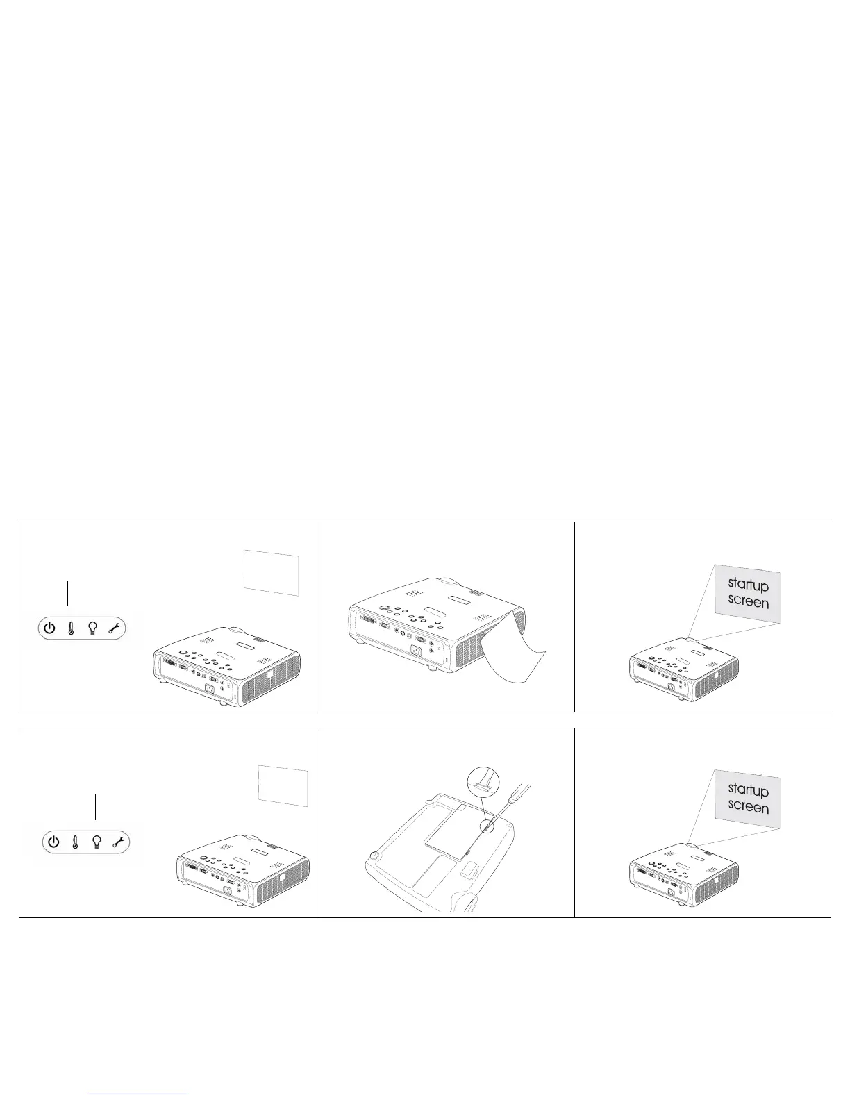 projector and turn it on: lamp lights