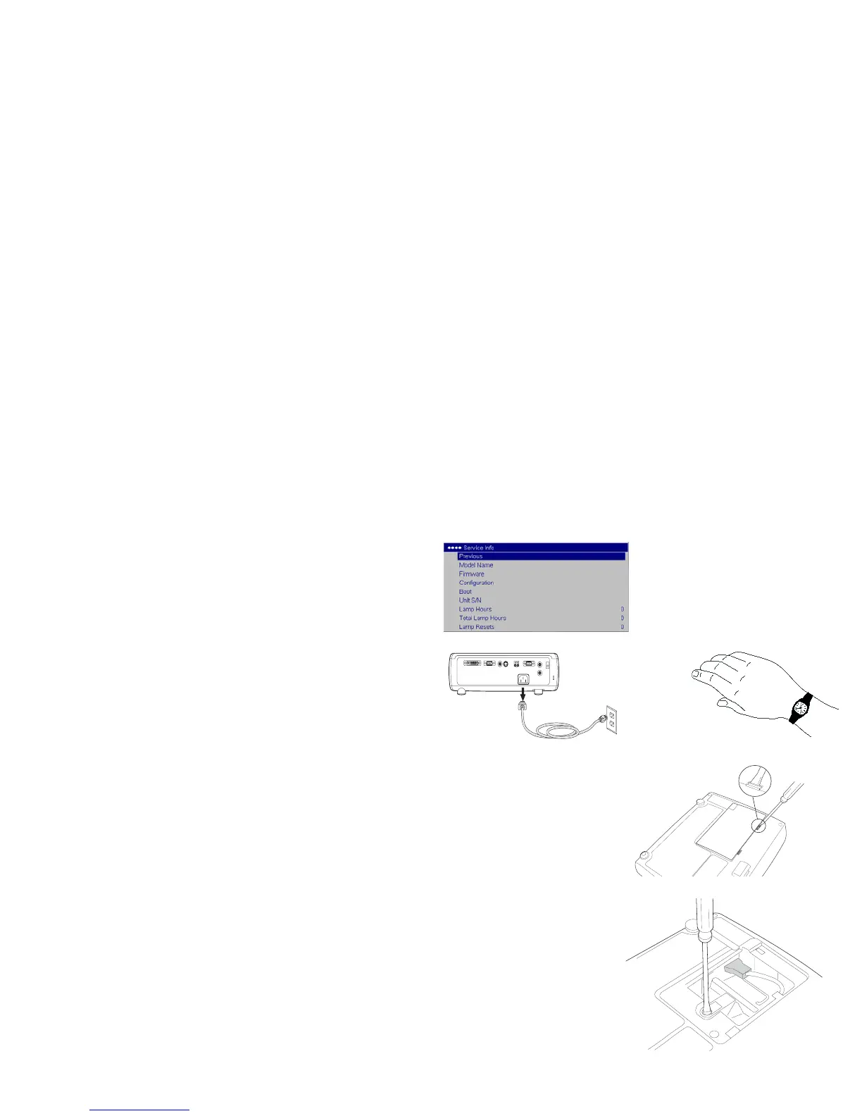 • Do not drop the lamp module. The glass may shatter and cause injury.