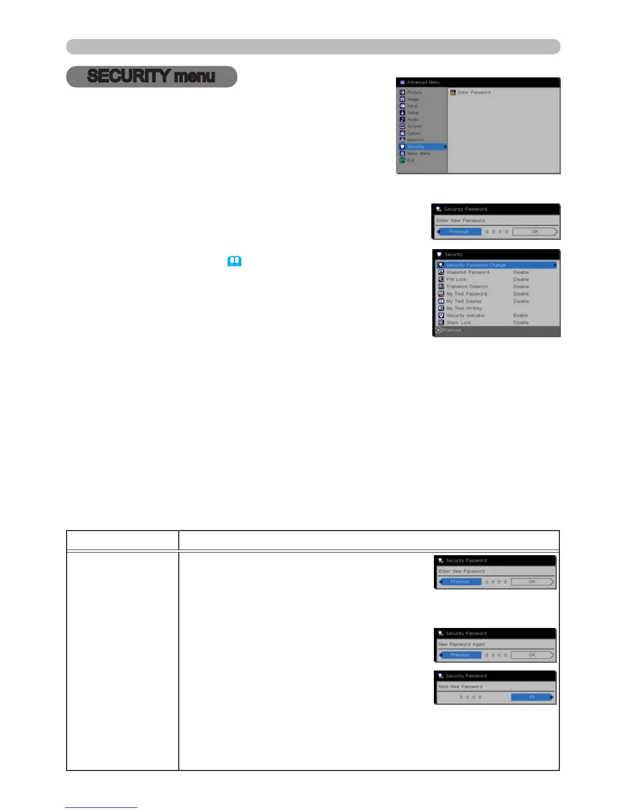 (1) Use the ▲/▼ buttons on the SECURITY menu