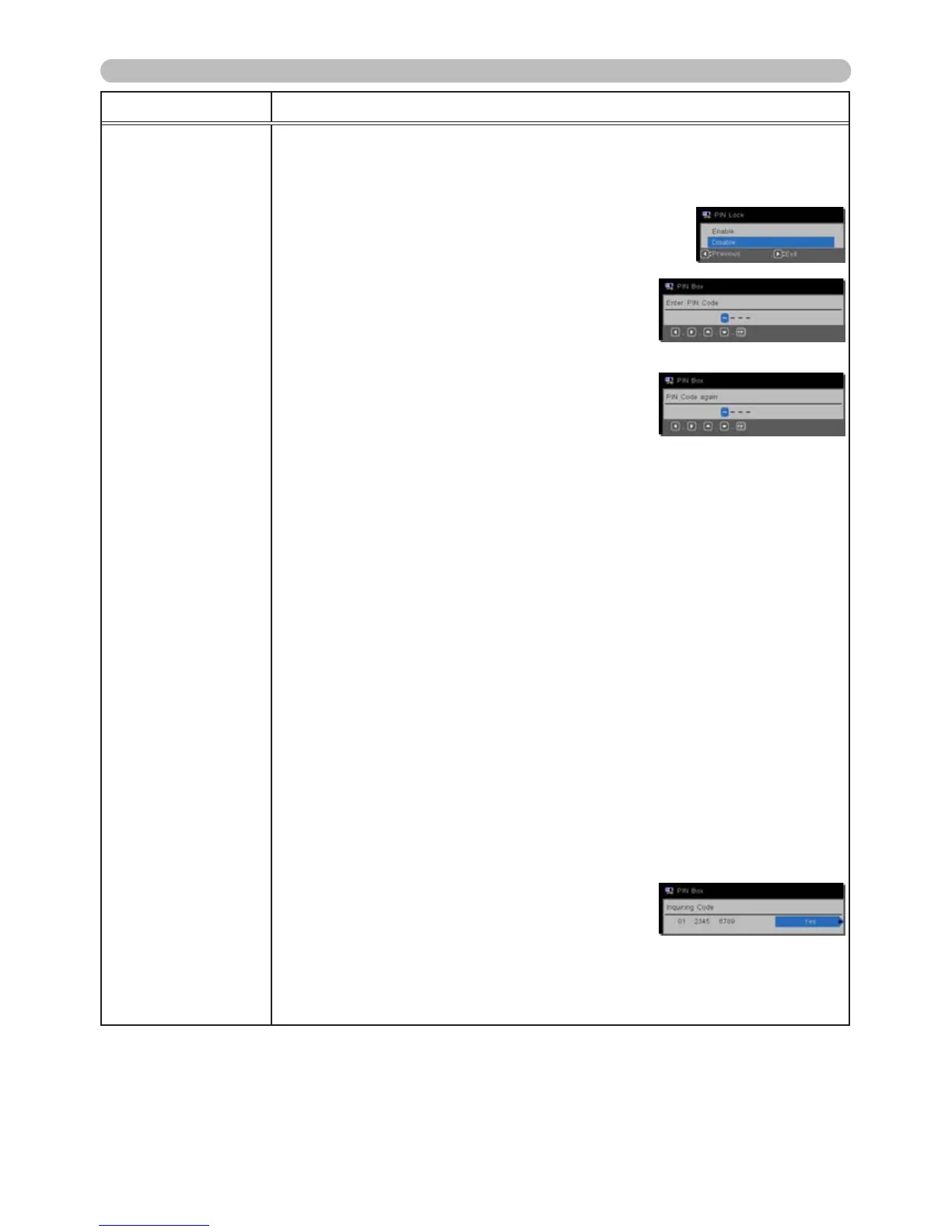 Afterwards the projector will turn off every time an incorrect PIN code is