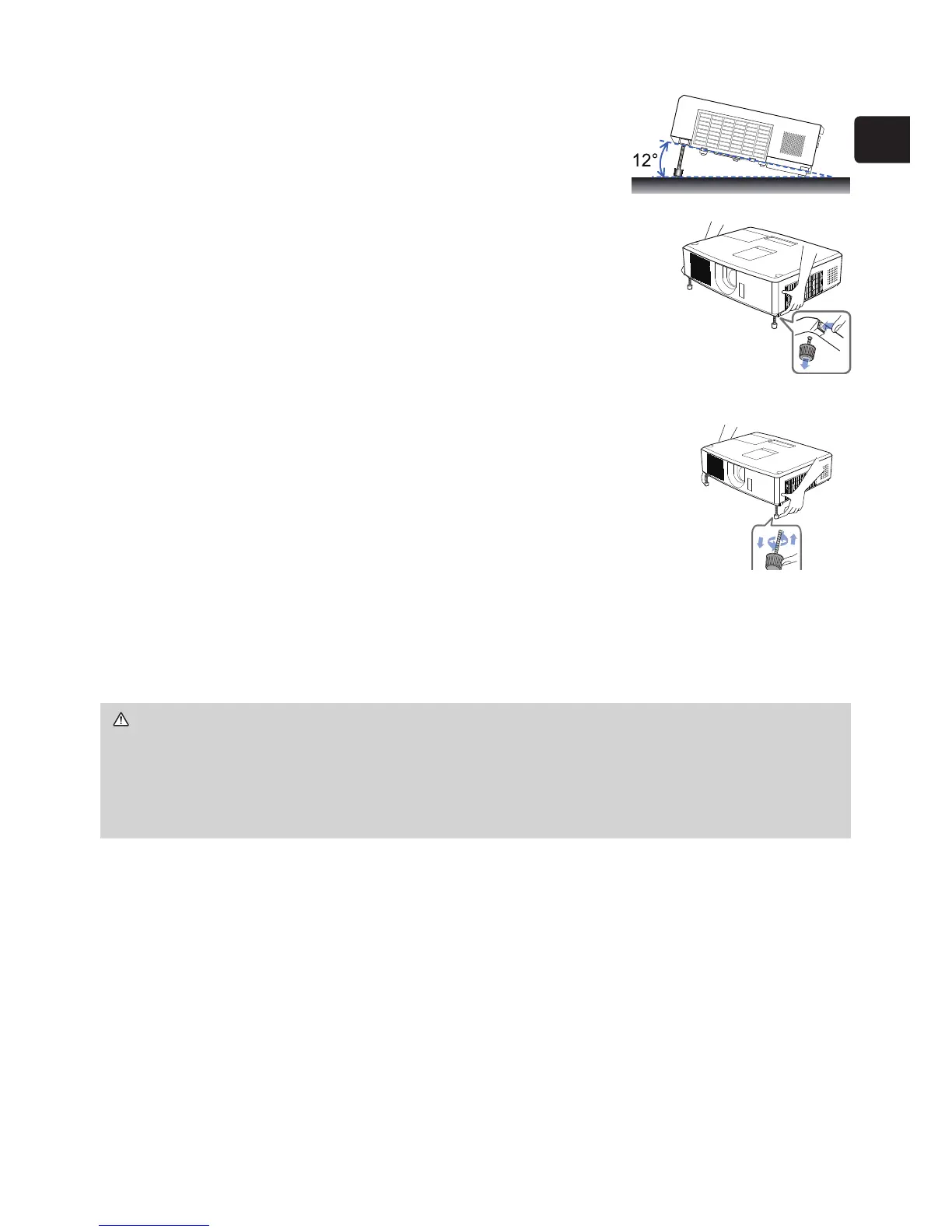 12 degrees using the adjuster feet. A projector tilted more than this may