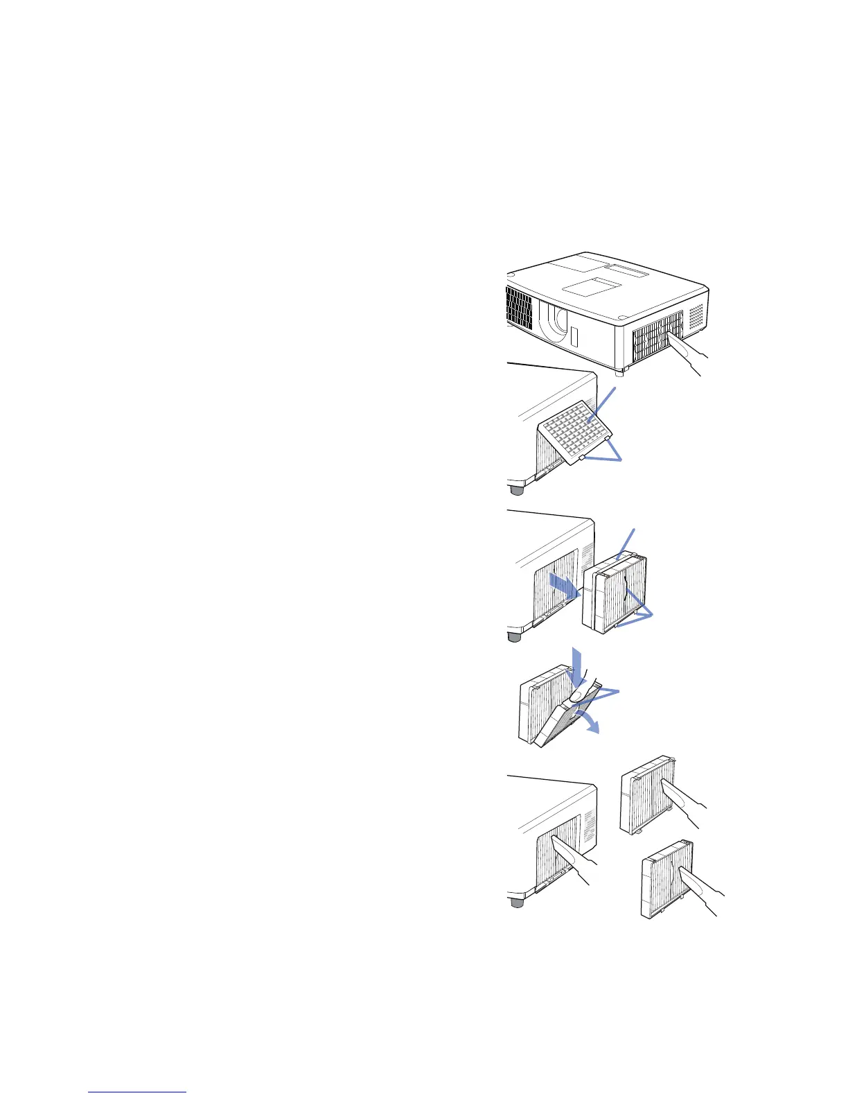 The projector air lter consists of a lter cover and a lter unit with two types of