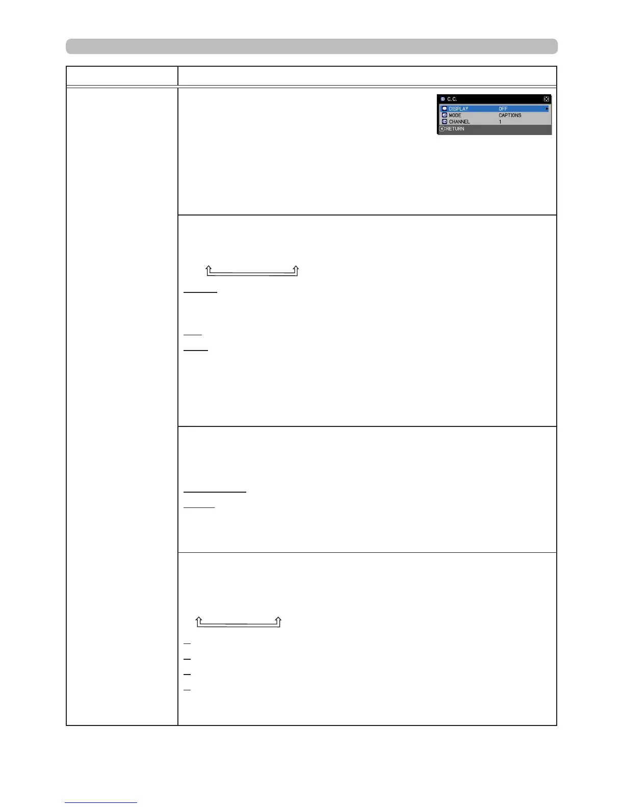CAPTIONS : Display Closed Captioning.