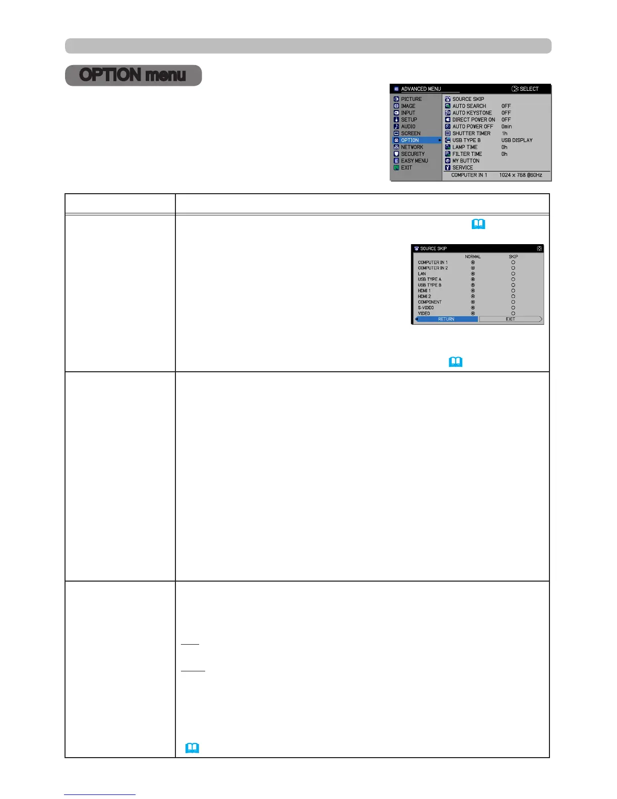 OPTION menu