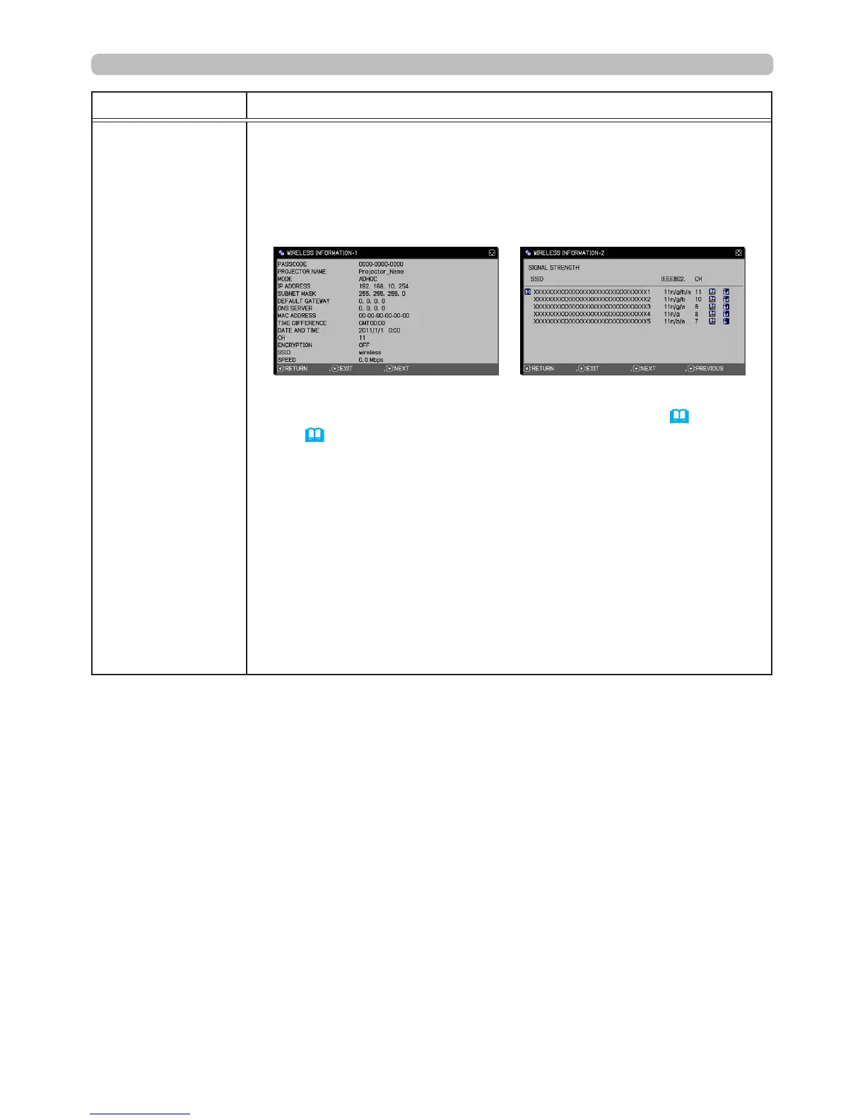 the wireless LAN settings. Use the ▲/▼ buttons to switch the page.
