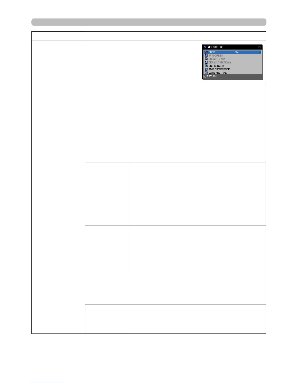 DHCP enabled. To save the setting, press the ►