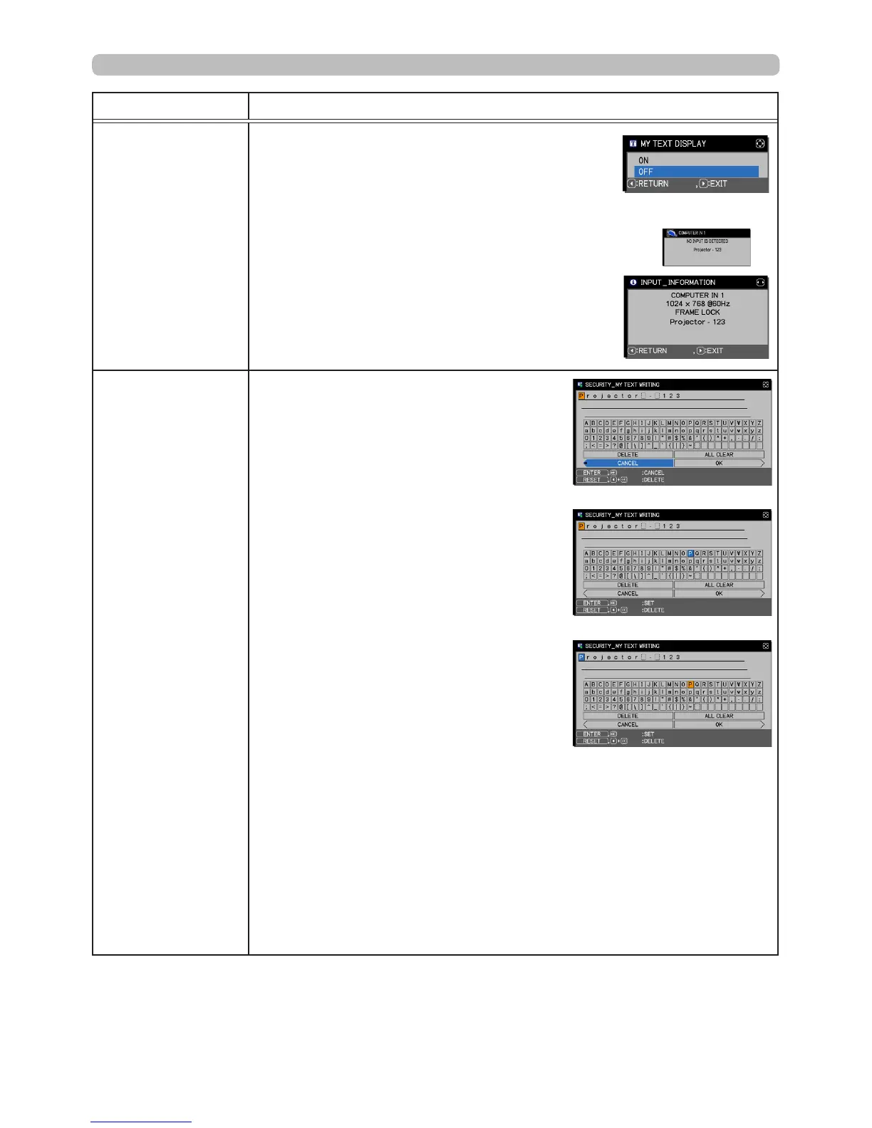 • This function is only available when the MY TEXT