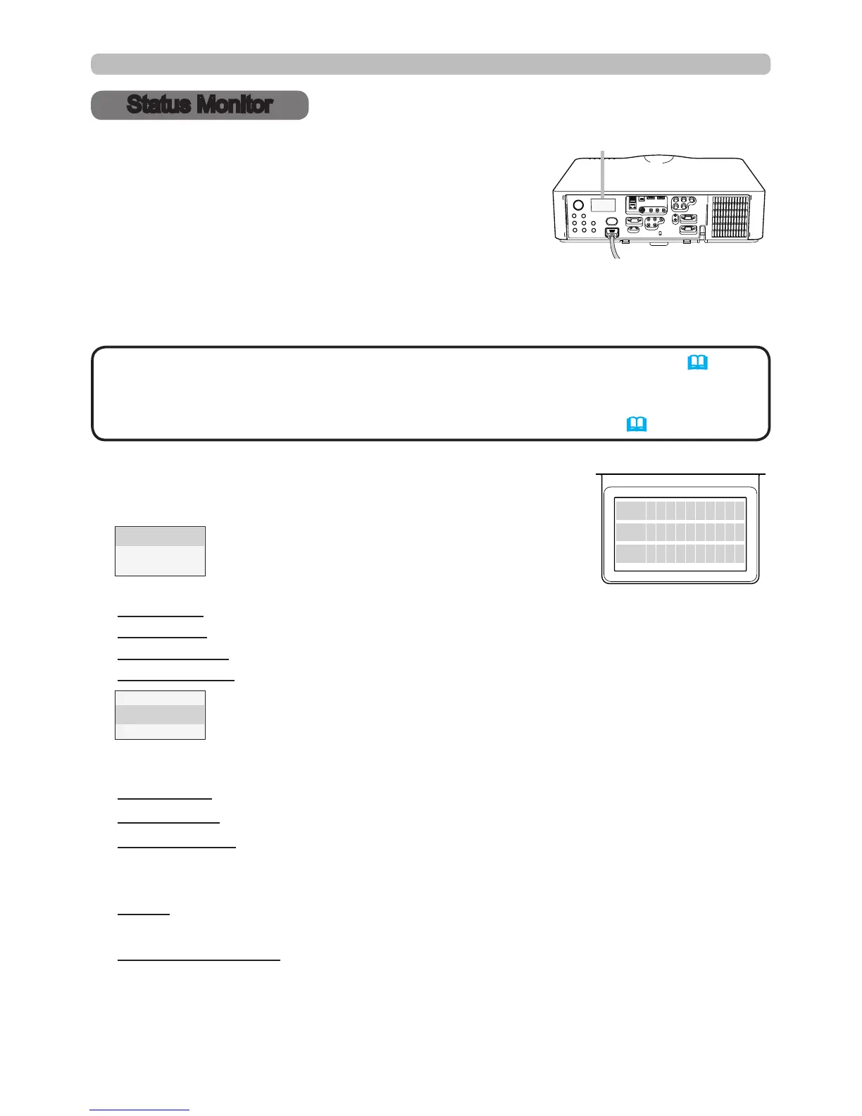 The Status Monitor displays the state of the projector