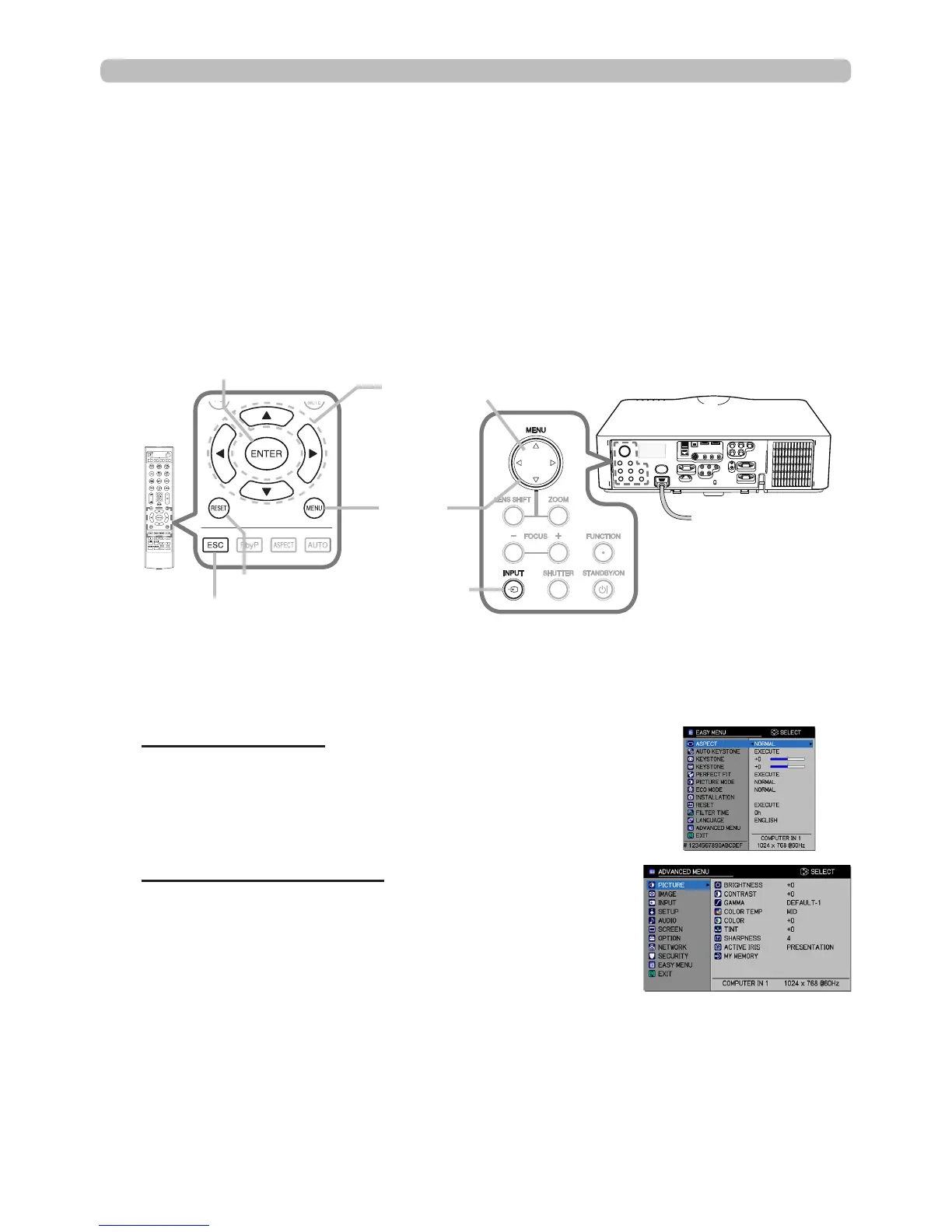 To start the MENU, press the MENU button. EASY MENU will appear just