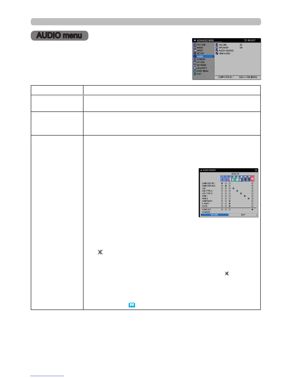 Using the ▲/▼ buttons turns on/off the built-in speaker.