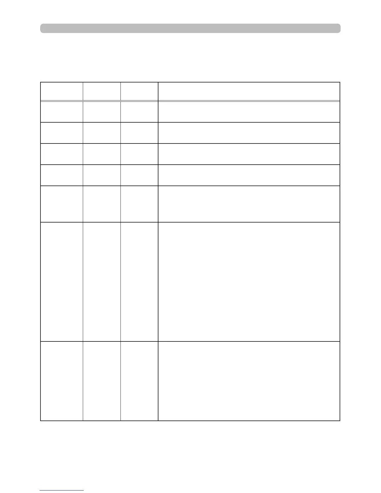following table.