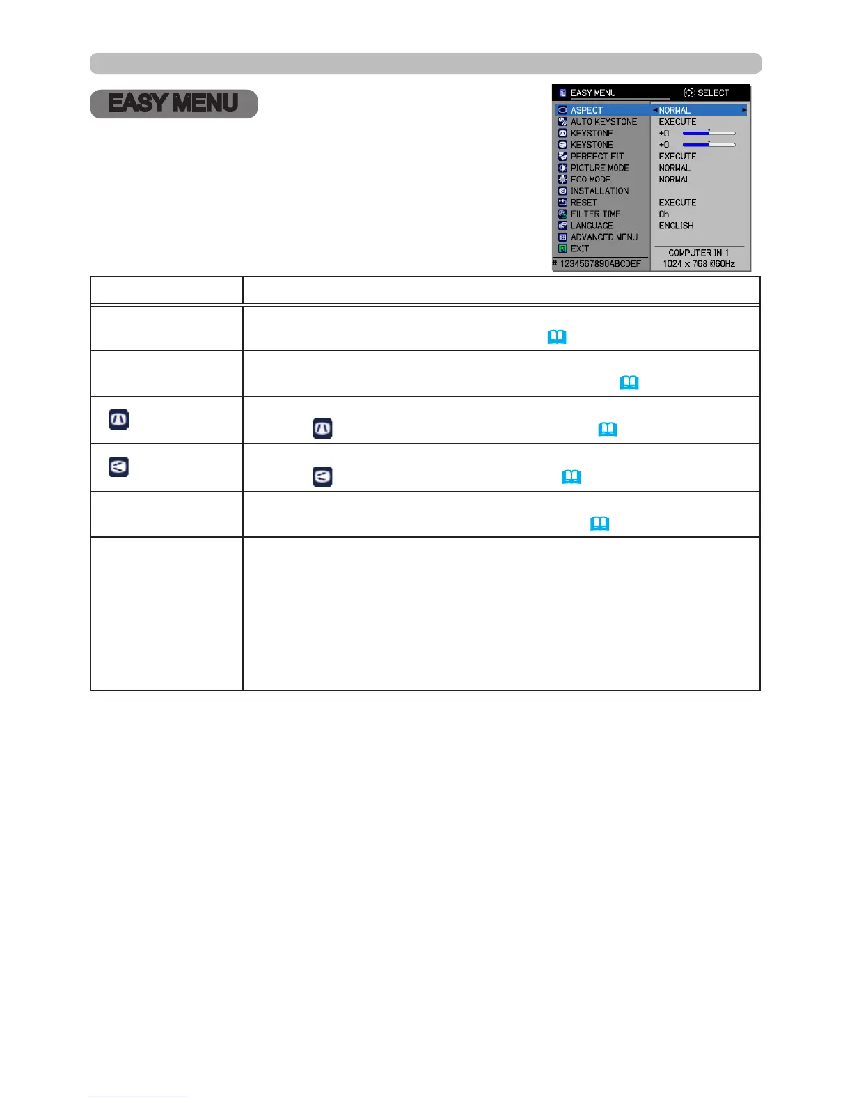 From the EASY MENU, you can perform the items