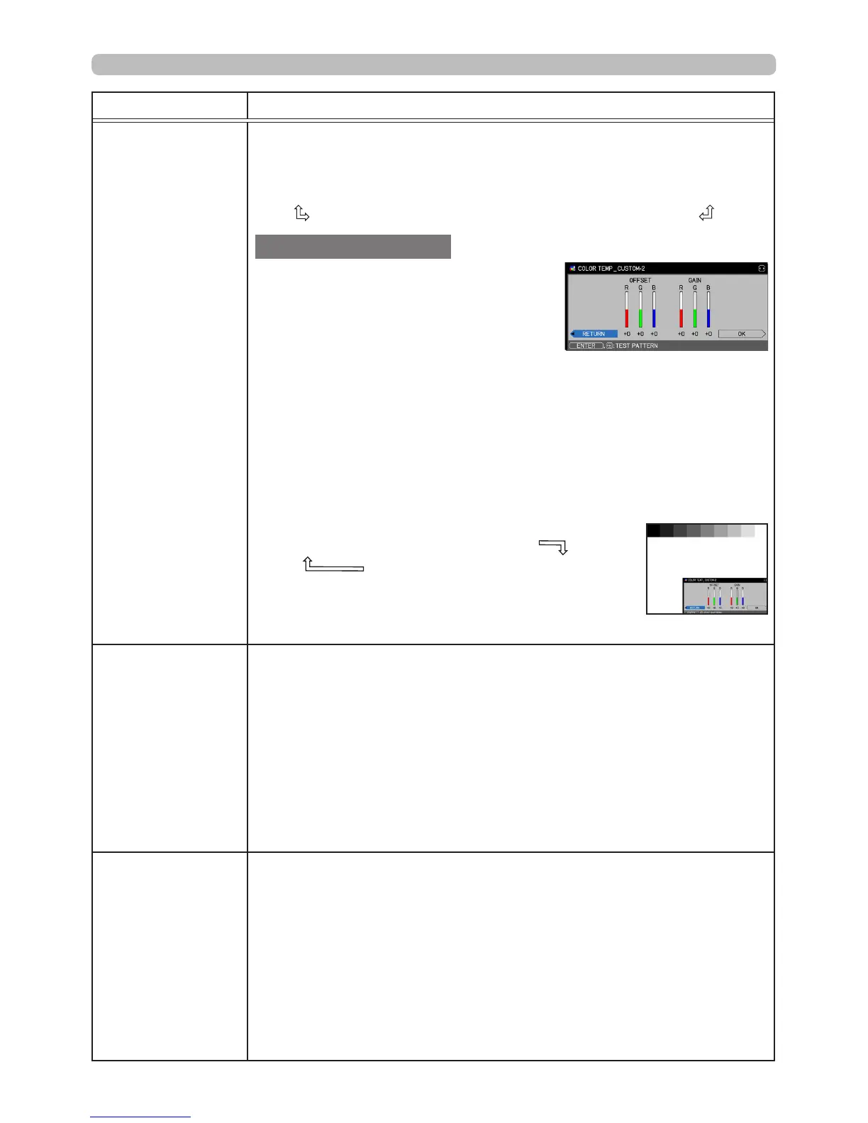 of the test pattern. GAIN adjustments mainly affect color intensity on