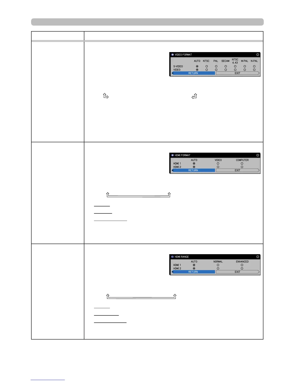 • When COMPUTER is selected, the functions COLOR (PICTURE