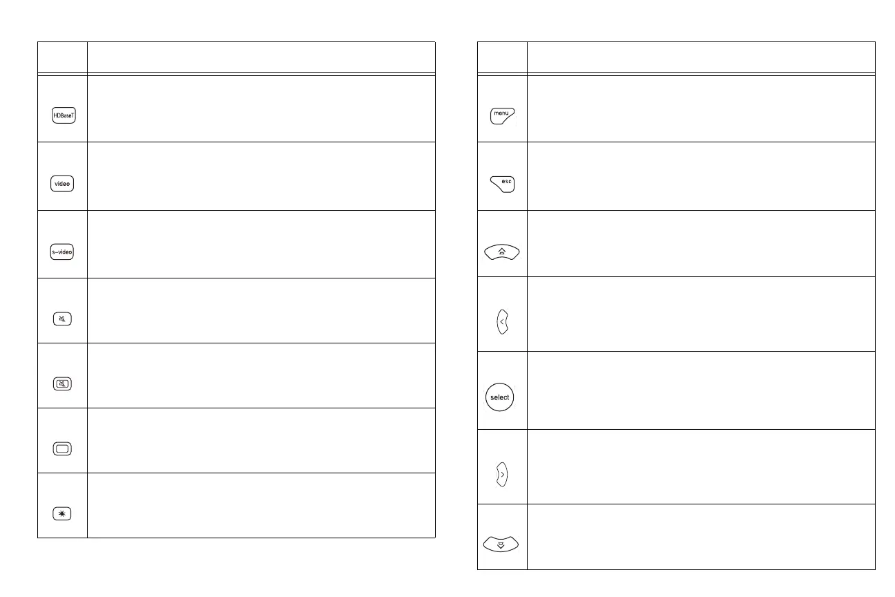 Esc: closes the projector’s menu system.