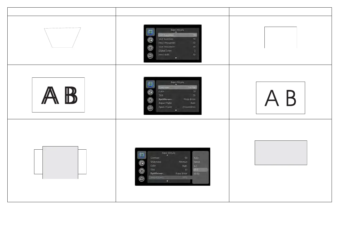 Image not square Adjust Keystone in the Basic Picture menu Square image