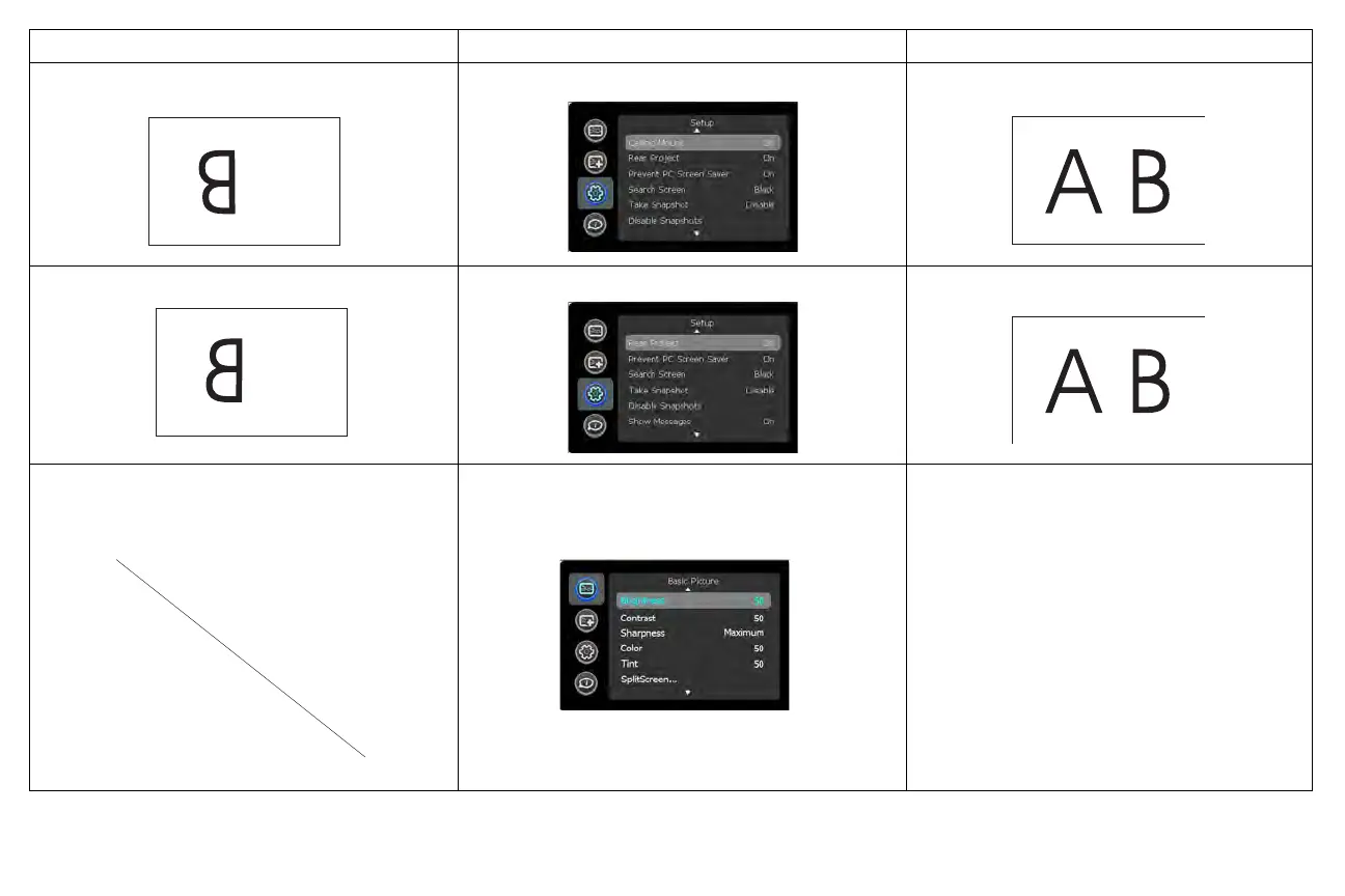 Image reversed left to right Turn off Rear Project in Setup menu Correct image