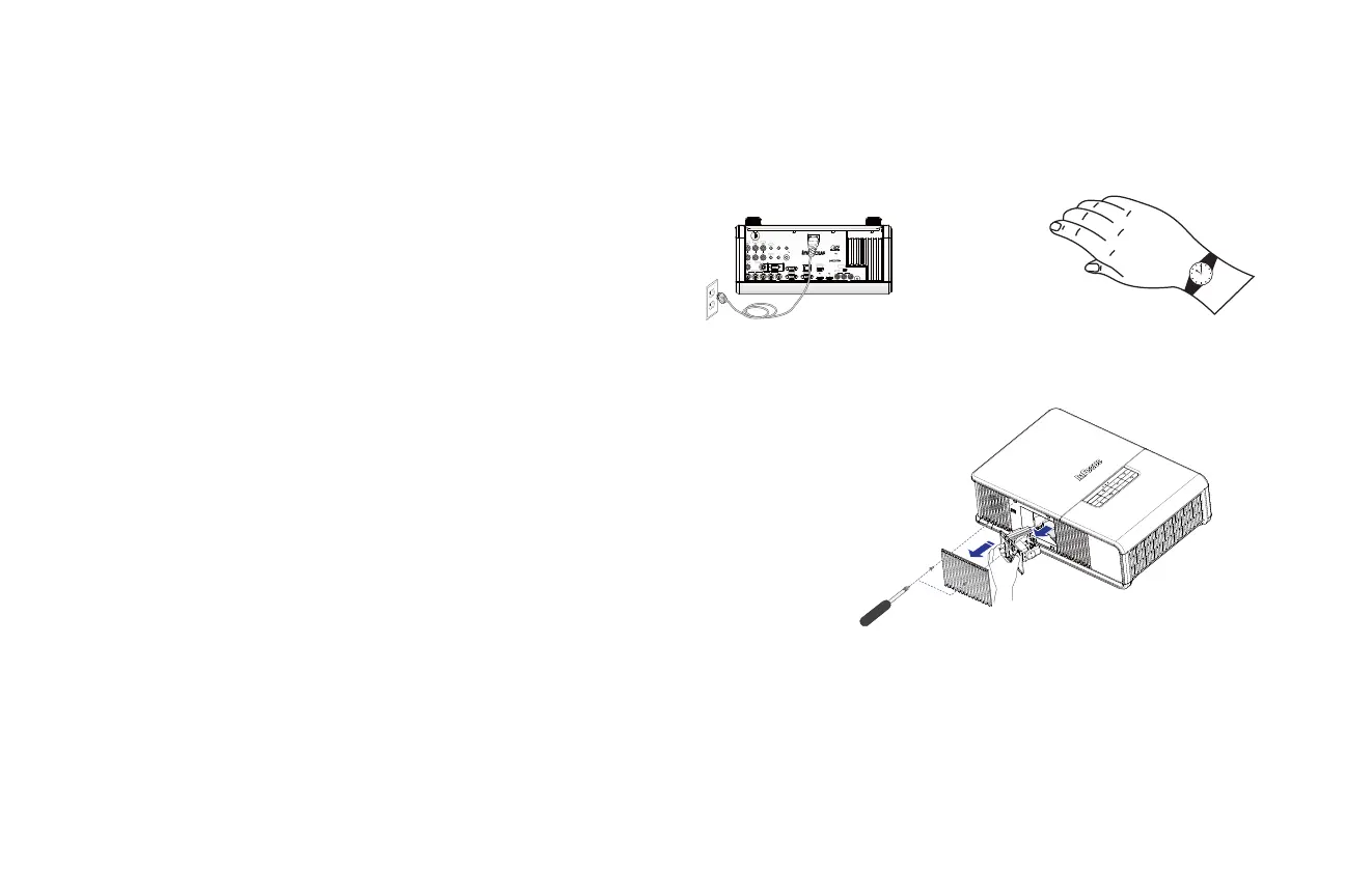 • Do not touch the glass surface of the lamp module. Fingerprints can
