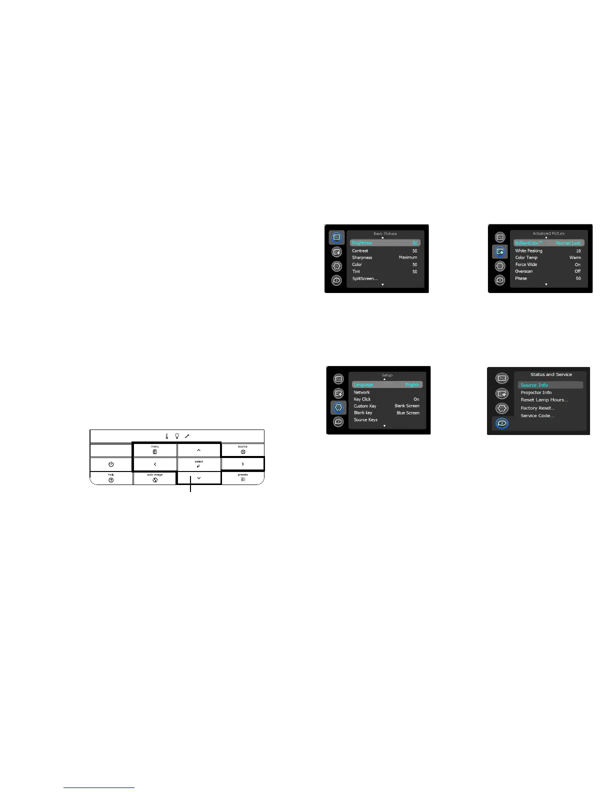 To open the menus, press the Menu button on the keypad or remote. (The menus