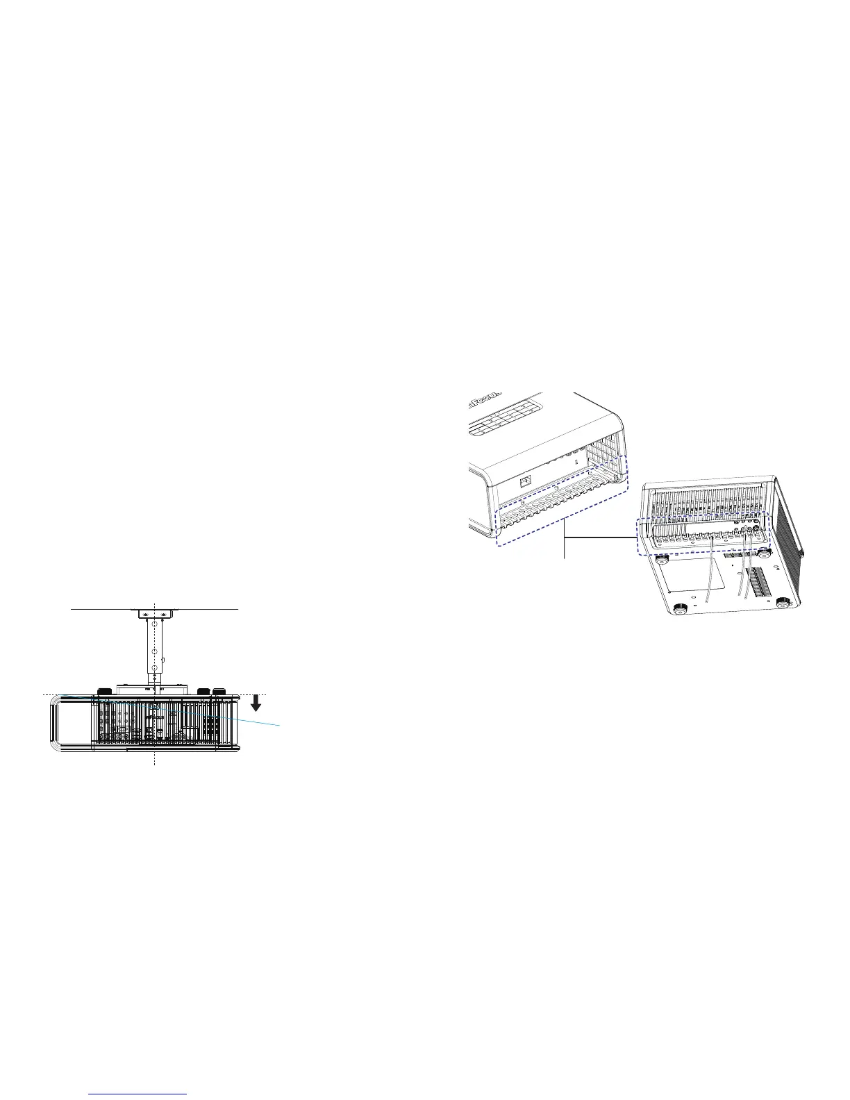 .87” (22mm) from the bottom of projector to preserve required airflow